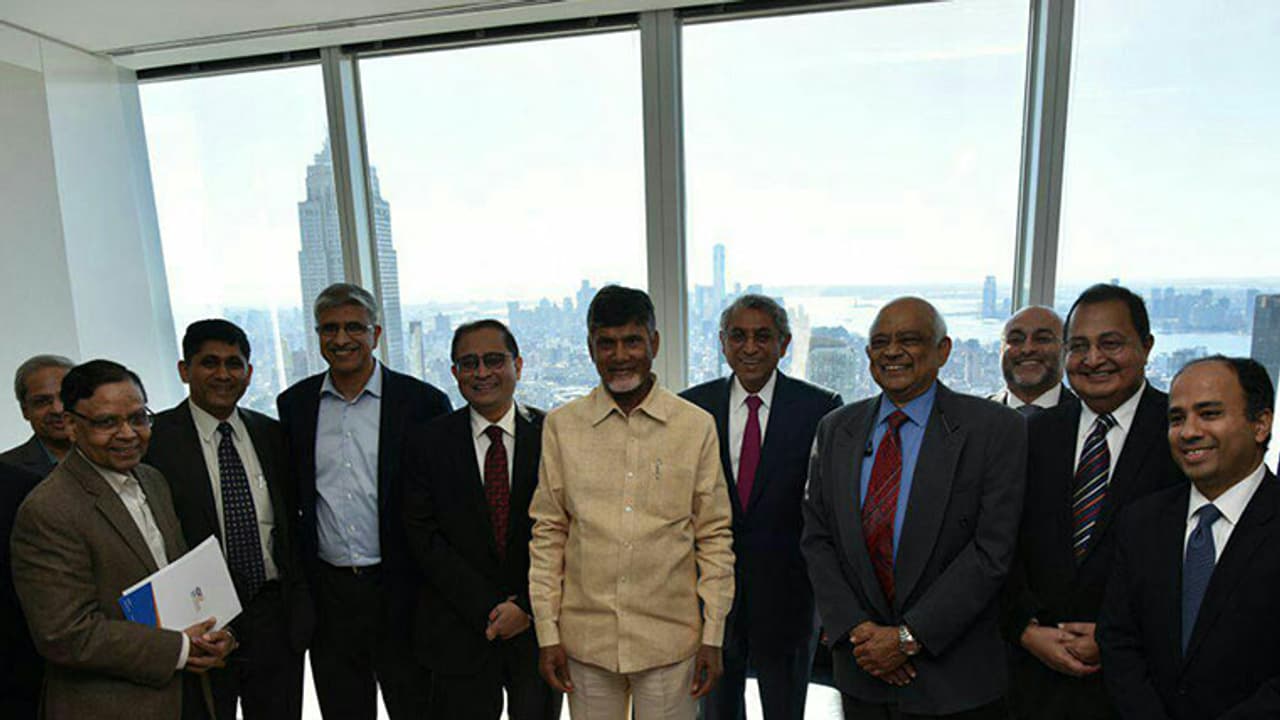 ముఖ్యమంత్రి బృందంలో రాష్ట్ర ఆర్ధిక మంత్రి యనమల రామకృష్ణుడు, రాష్ట్రప్రభుత్వ సలహాదారు డాక్టర్ పరకాల ప్రభాకర్, ముఖ్యమంత్రి ముఖ్య కార్యదర్శి జి. సాయి ప్రసాద్, ఈడీబీ సీఈఓ జాస్తి కృష్ణ కిశోర్ ఉన్నారు. బ్యాంక్ ఆఫ్ అమెరికా మెర్లిల్లించ్ లో వెనెక్లేశన్ అసోసియేట్స్ మేనేజింగ్ ప్రిన్సిపాల్ డా. మహావీర్ అత్వాల్ , యుఎస్-ఇండియా స్ట్రాటజిక్ పార్టనర్షిప్ ఫోరమ్ అధ్యక్షుడు డాక్టర్ ముఖేష్ అఘీ తదితరులు పాల్గొన్నారు.