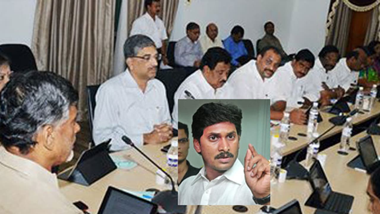 ఉపఎన్నికలో గెలవటానికి టిడిపి పడుతున్న అవస్తలు అందరూ చూస్తున్నదే. మొత్తం మంత్రివర్గాన్నే నంద్యాలలో మోహరించినా గెలుపుపై ఇప్పటికీ నమ్మకం కలగటం లేదు. ఇటువంటి పరిస్ధితుల్లోనే వైసీపీ ఆధ్వర్యంలో భారీ బహిరంగ సభ జరుగుతోంది మరికొద్ది గంటల్లో. అందులో పాల్గొనేందుకు జగన్ నంద్యాలకు బయలుదేరారు. ఆ విషయంపైన కూడా సమావేశంలో చర్చ జరిగింది.