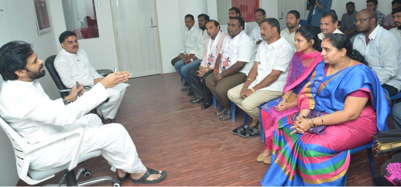 తొలుత శ్రీకాకుళం జిల్లా నాయకులతో పవన్ కళ్యాణ్ సమీక్ష సమావేశం నిర్వహించారు. శ్రీకాకుళం జిల్లాలో పార్టీ పరిస్థితిపై నేతలను అడిగి తెలుసుకున్నారు. శ్రీకాకుళం జిల్లాలో జనసేన పార్టీకి అన్ని సామాజిక వర్గాల ప్రజల మద్దతు ఉందని నేతలు తెలిపారు. అన్ని సామాజికవర్గాల మధ్య సయోధ్యను మరింత పెంచాల్సిన అవసరం ఉందన్నారు.