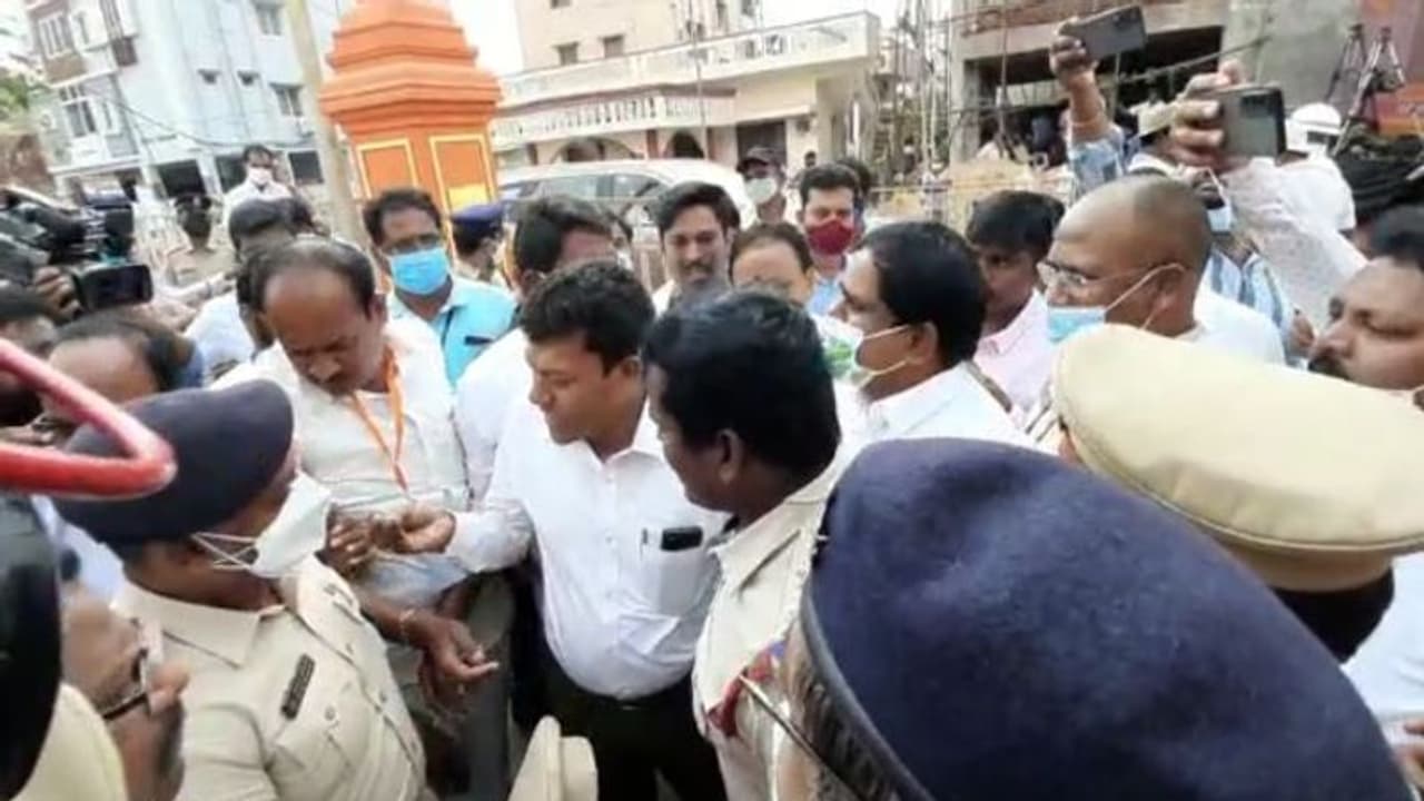 సీఎంని అడ్డుకునేందుకు ఎయిర్ పోర్ట్ కు బయలుదేరిన Tnsf శ్రేణులను పోలీసులు అడ్డుకున్నారు. Tnsf రాష్ట్ర అధ్యక్షుడు ప్రణవ్ గోపాల్ తో పాటు మరికొంత మందిని పోలీసులు అరెస్ట్ చేసారు. సీఎం వచ్చిన సమయంలో విమానాశ్రయంలోకి కేవలం టికెట్ ఉన్న ప్రయాణికుల్నే పోలీసులు అనుమతించారు.