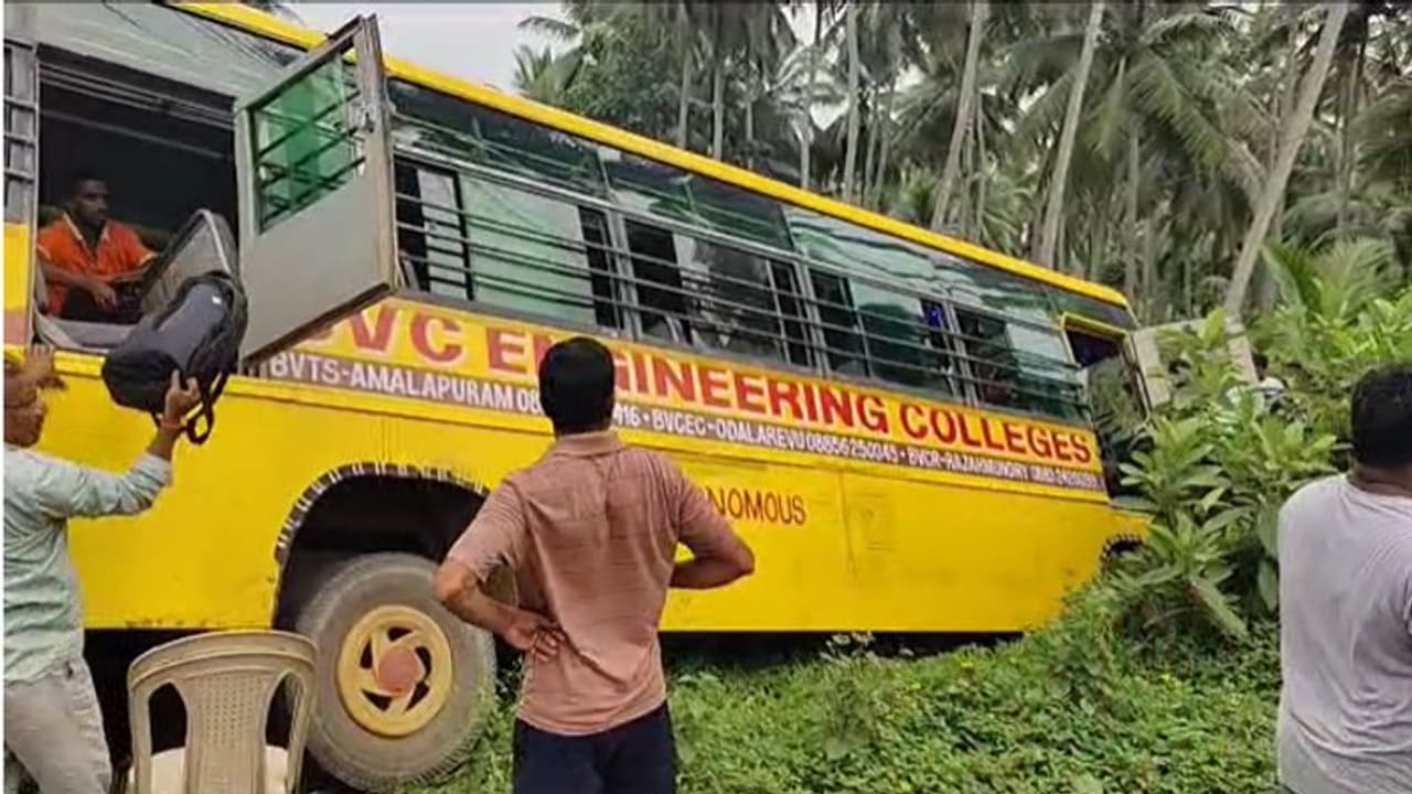 కొబ్బరి తోటలోకి దూసుకెళ్లినా బోల్తా పడకుండా, చెట్లను ఢీకొట్టకుండానే బస్సు ఆగింది. దీంతో బస్సు డ్రైవర్ తో సహా విద్యార్థులు స్వల్ప గాయాలతో బయటపడ్డారు. ప్రమాదం జరిగిన వెంటనే స్థానికులు స్పందించి ఎమర్జెన్సీ మార్గం ద్వారా బస్సులోని వారిని బయటకు తీసుకువచ్చారు.