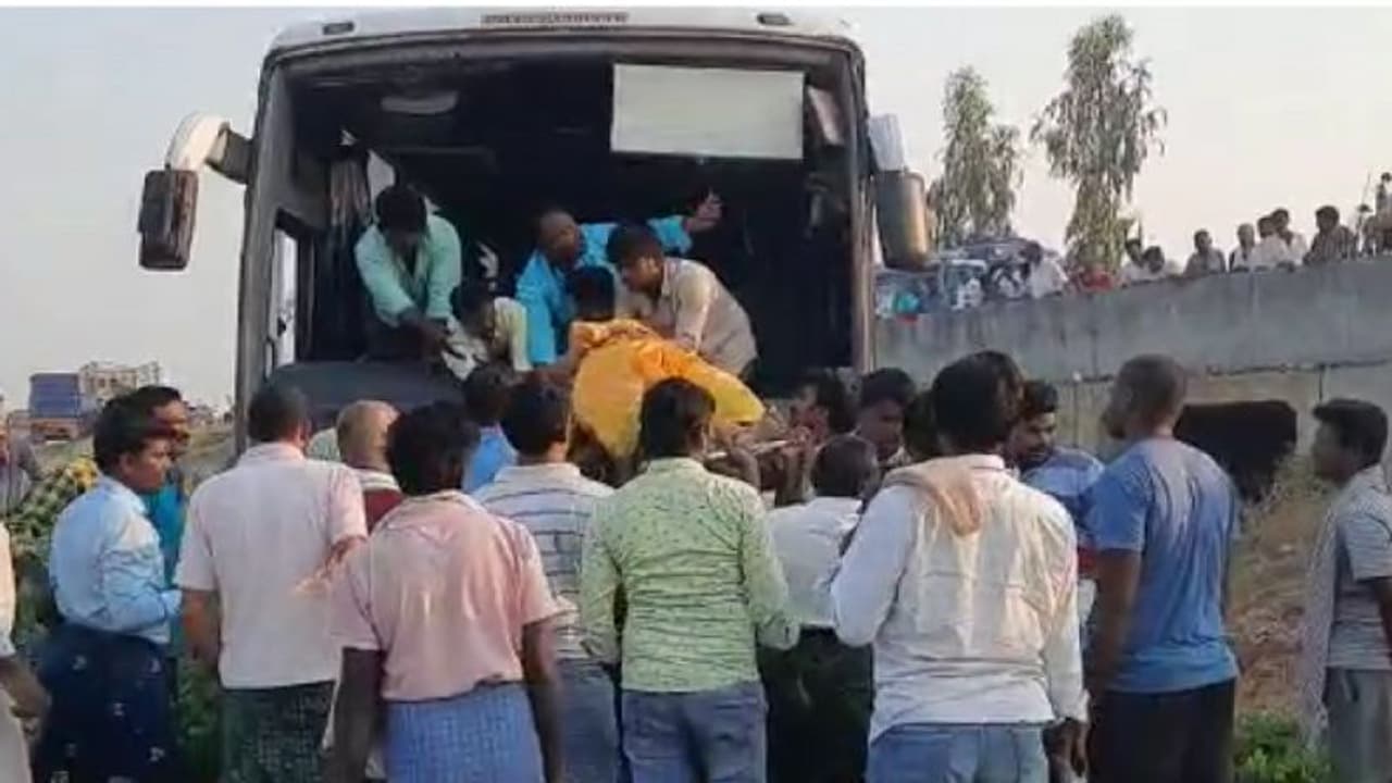 ప్రమాదం కారణంగా బస్సు డోర్స్ లాక్ అయిపోయి ప్రయాణికులు కొద్దిసేపు బయటకు రాలేకపోయారు. ప్రమాదాన్ని గుర్తించిన స్థానికులు వెంటనే సహాయక చర్యలు చేపట్టారు. బస్సు ముందుభాగంగా అద్దాలు పగిలిపోగా అందులోంచి ప్రయాణికులు బయటకు తీసుకువచ్చారు. ఇద్దరు మహిళలు తీవ్రంగా గాయపడగా మరో 15మంది ప్రయాణికులు స్వల్ప గాయాలతో బయటపడ్డారు. గాయపడిన మహిళలకు అంబులెన్స్ లో దగ్గర్లోని హాస్పిటల్ కు తరలించారు. వారి పరిస్థితి మెరుగ్గానే వున్నట్లు.... ఓ మహిళకు కాలు విరిగినట్లు తెలుస్తోంది.