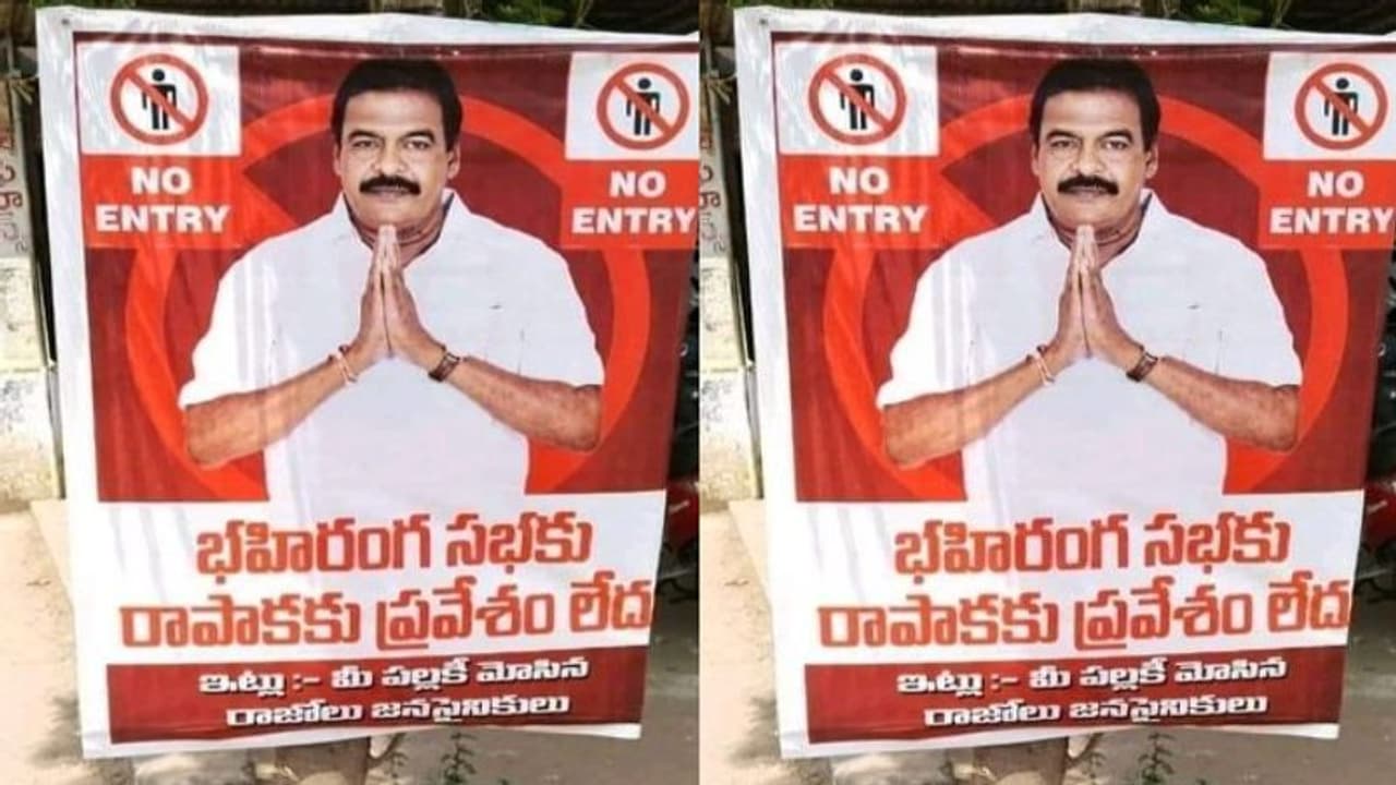 జనసేన (Jana Sena) ఆవిర్బావ సభ నేపథ్యంలో జనసైనికులు ఏర్పాటు చేసిన కొన్ని పోస్టర్లు ఇప్పుడు హాట్ టాపిక్గా మారింది. ఎమ్మెల్యే రాపాక వరప్రసాద్ (Rapaka Varaprasad) ప్రవేశం లేదంటూ జనసైనికులు ఏర్పాటు చేసిన బ్యానర్లు సోషల్ మీడియాలో వైరల్గా మారాయి.