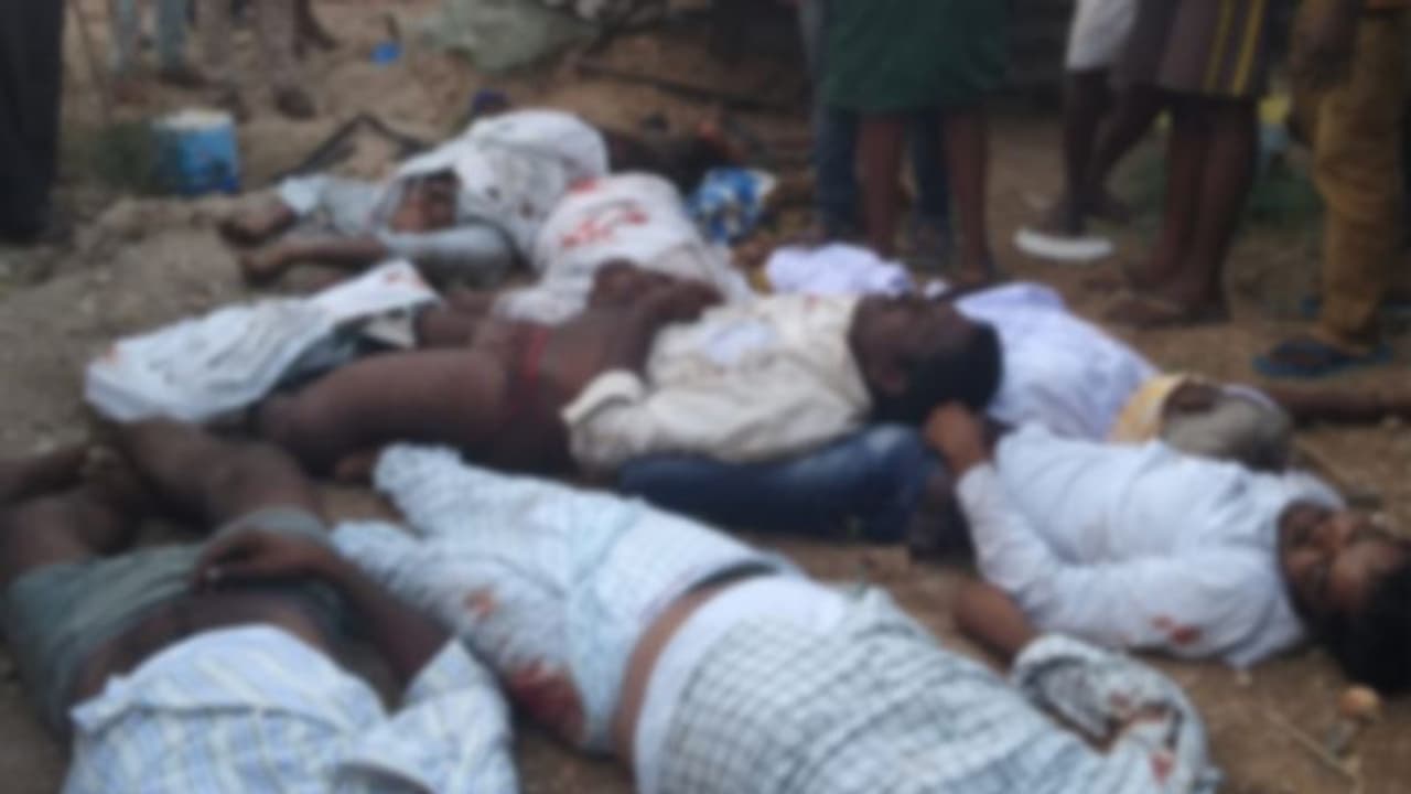 ప్రమాదాన్ని గమనించిన స్థానికులు తుఫాను వాహనంలో చిక్కుకుపోయిన వారిని బయటకు తీసేందుకు ప్రయత్నిస్తున్నారు. మృతులంతా గద్వాల జల్లా వడ్డేపల్లి మండలం రామాపురం గ్రామానికి చెందిన వారు.