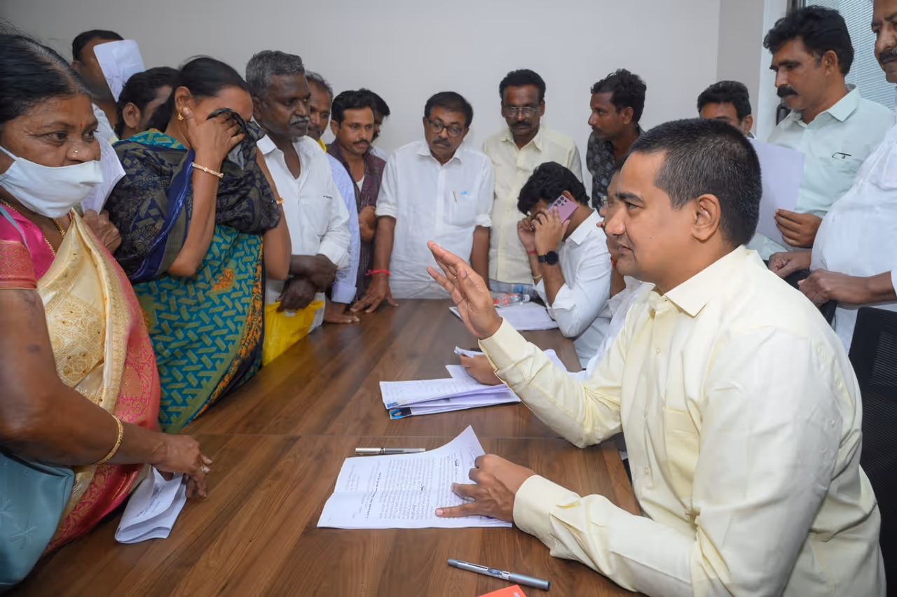 పల్నాడు జిల్లా మాచర్ల మండలం రాయవరం గ్రామానికి చెందిన ఉప్పుతోళ్ల ఆంజనేయులు విజ్ఞప్తి చేస్తూ.. సర్వే నెంబర్. 6.43 లో ఉన్న 7ఎకరాల49 సెంట్ల దేవాదాయశాఖ భూమిని తనకు లీజుకు ఇవ్వాలని 2019 లో అర్జీ పెట్టుకోని.. మాచర్ల ఈఓ కృష్ణమూర్తికి రూ.40,000 చెల్లించాక.. అనంతరం వైసీపీ అధికారంలోకి రావడంతో ఆపార్టీకి చెందిన వైసీపీ నేత తురక కిషోర్ టీడీపీ వాళ్లకు ఎటువంటి పొలం ఇచ్చేది లేదని బెదిరించి బూతులు తిట్టాడని.. ఈవిషయాన్ని పులు మార్లు కలెక్టర్ దృష్టికి తీసుకెళ్లినా పట్టించుకోలేదని.. తనకు తిరిగి ఆ పొలం లీజుకు ఇప్పించి న్యాయం చేయాలని వేడుకున్నాడు.