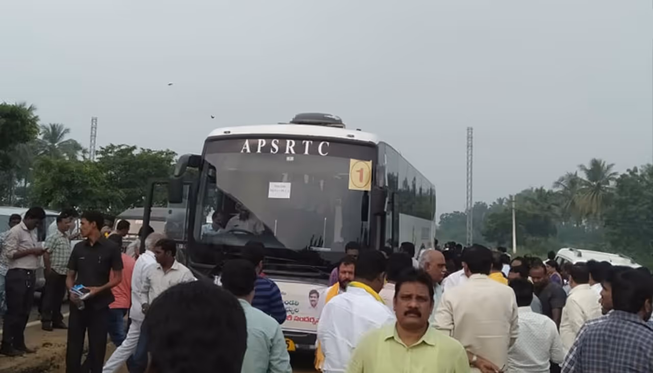 డ్రైవర్ ఎంతసేపు ప్రయత్నించినప్పటికీ బస్సు కదలకపోవడంతో 35 మంది ఎమ్మెల్యేలు, ఎమ్మెల్సీలు, ఇతర నేతలను దెందులూరు ఎమ్మెల్యే చింతమనేని ప్రభాకర్ వేరే వాహనాల్లో పోలవరానికి తరలించారు.