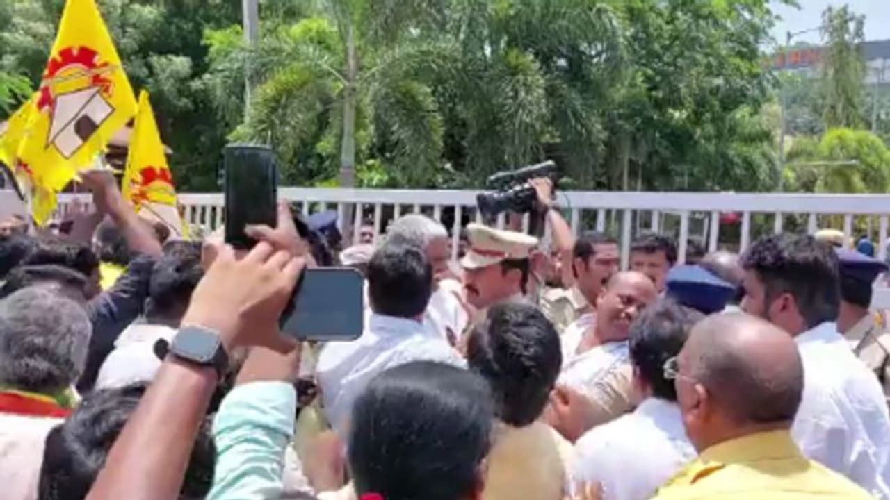 తెలుగుదేశం పార్టీ శ్రేణులు మంగళగిరిలో ఉన్న డీజీపీ కార్యాలయాన్ని ముట్టడించేందుకు యత్నించారు. కుప్పంలో టీడీపీ అధినేత చంద్రబాబు పర్యటన సందర్భంగా వైసీపీ అడ్డంకులు సృష్టించిన పోలీసులు స్పందించడం లేదని టీడీపీ నాయకులు ఆరోపిస్తున్నారు. కుప్పంలో పోలీసుల తీరును నిరసిస్తూ టీడీపీ ఏపీ అధ్యక్షుడు అచ్చెన్నాయుడు ఆధ్వర్యంలో ఆ పార్టీ నాయకులు, కార్యకర్తలు డీజీపీ ఆఫీసు ముట్టడికి బయలుదేరారు. టీడీపీ కార్యాలయం నుంచి డీజీపీ ఆఫీసుకు కాలినడకన ర్యాలీగా చేరుకున్నారు.