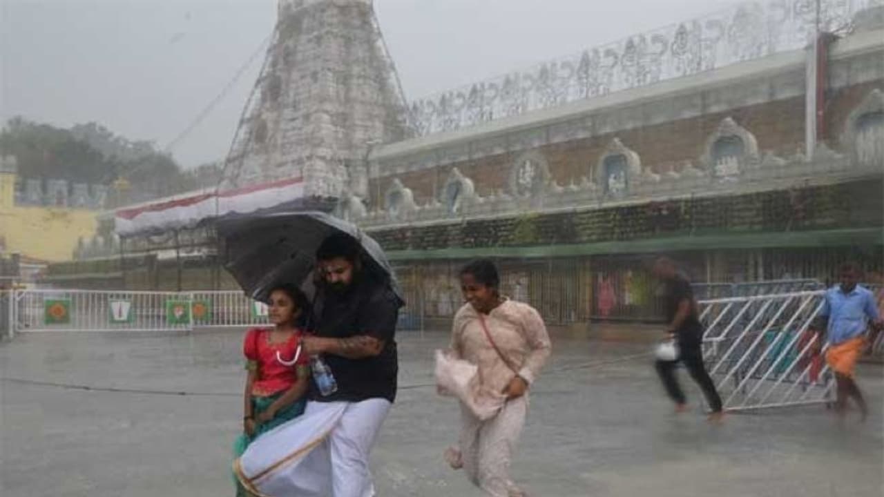 Heavy rain occurs in Tirumala: తిరుమలలో శనివారం కురిసిన భారీ వర్షానికి భక్తులు తీవ్ర ఇబ్బందులు పడ్డారు. ఈదురుగాలులతో కూడిన భారీ వర్షం కారణంగా భక్తులు ఇబ్బందులు ఎదుర్కొన్నారనీ, వర్షం నుంచి తమను తాము రక్షించుకునేందుకు షెడ్ల వైపు పరుగులు తీశారని సమాచారం. సుదీర్ఘ ఎండల తర్వాత అకస్మాత్తుగా భారీ వర్షం కురిసింది. కుండపోత వర్షంతో ఆలయంలో వరద నీరు చేరింది. దీంతో భక్తులు ఇబ్బందులు పడ్డారు. ఉరుములు, మెరుపులతో కూడిన వర్షాలు కురవడంతో పాటు పిడుగులు సైతం పడే అవకాశం ఉందన్న వాతావరణ శాఖ హెచ్చరికలను దృష్టిలో ఉంచుకుని భక్తులు సురక్షిత ప్రాంతాల్లో ఉండాలని తిరుమల తిరుపతి దేవస్థానం (టీటీడీ) అధికార యంత్రాంగం తెలిపింది. భక్తులు జాగ్రత్తగా ఉండాలనీ, అధికారుల సూచనలు పాటించాలని పేర్కొంది.