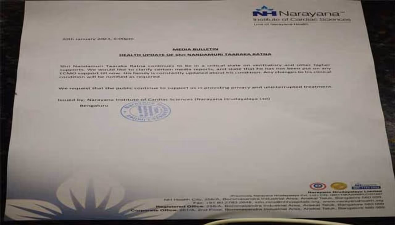 తారకరత్నకు వెంటిలేటర్ సపోర్టుతో చికిత్స అందిస్తున్నట్టుగా వైద్యులు వివరించారు. తారకరత్న ఆరోగ్యం ఇంకా విషమంగానే ఉందని కూడా వైద్యులు ప్రకటించారు. తారకరత్న కోలుకుంటారని నందమూరి కుటుంబ సభ్యులు ఆశాభావం వ్యక్తం చేస్తున్నారు