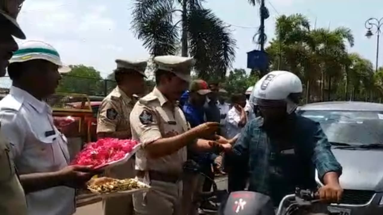 ప్రజలలో హెల్మెట్ ధరించాలని చెప్పెందుకు ఒక కొత్త పద్ధతి ఎంచుకున్నారు.
