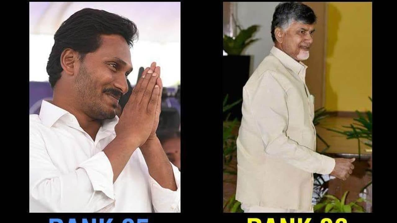 సహజంగానే ప్రధానమంత్రి నరేంద్రమోడికి మొదటిస్ధానం దక్కింది. అదే తెలుగురాష్ట్రాలకు సంబంధించిన వ్యక్తుల్లో జగన్ దే మొదటిస్ధానం. అంటే దేశవ్యాప్తంగా జగన్ కు 35వ స్ధానం దక్కింది. చంద్రబాబుకు 36వ స్ధానం దక్కటం గమనార్హం.