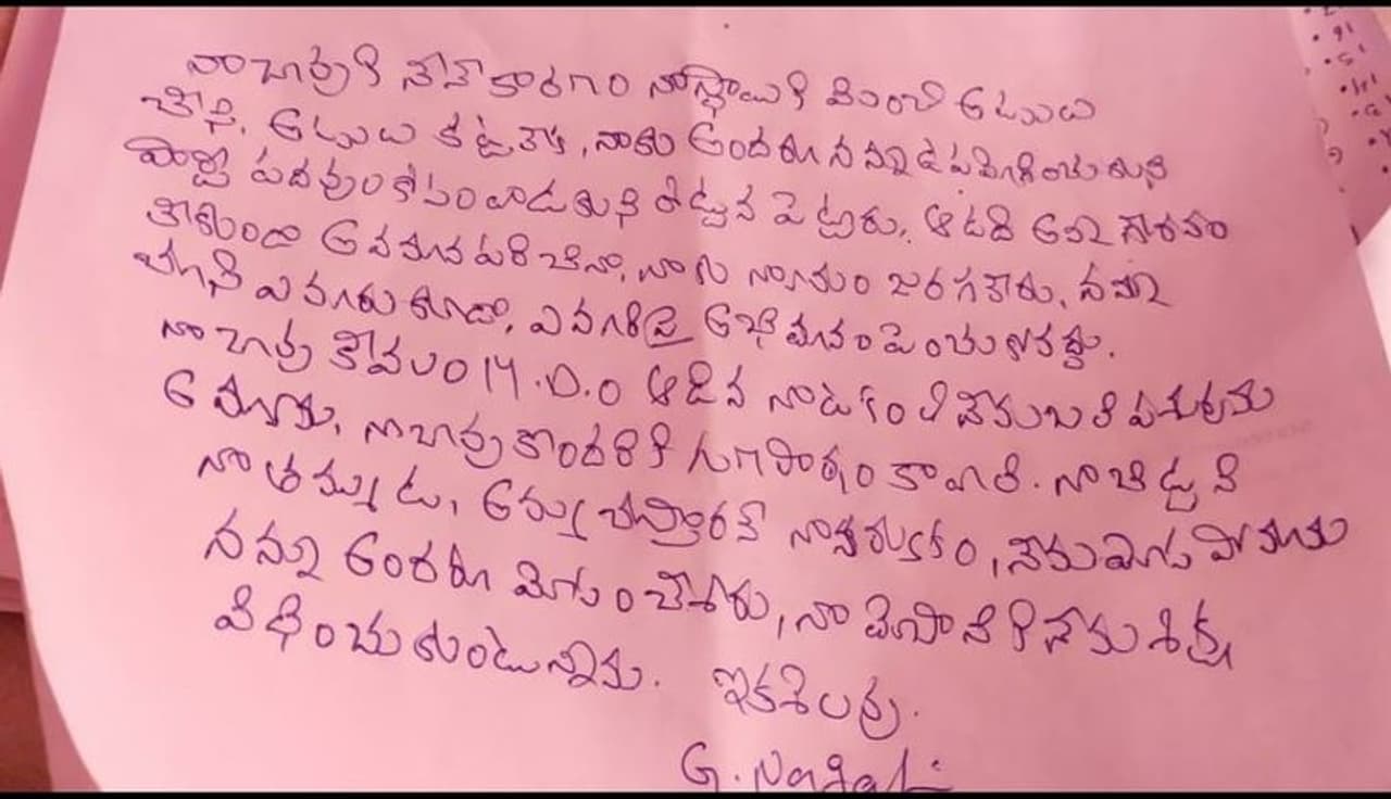 మచిలీపట్నం: కృష్ణా జిల్లా మచిలీపట్నం (machilipatnam) మండల వీవోఏ (VOA)ల సంఘం నాయకురాలు గరికపాటి నాగలక్ష్మి (42) ఆత్మహత్య కేసులో వైసిపి (YSRCP) నాయకుడు నరసింహారావును పోలీసులు అరెస్ట్ చేసారు. అలాగే ఆత్మహత్యకు ముందు నాగలక్ష్మి రాసిన సూసైడ్ లెటర్ ను పోలీసులు స్వాధీనం చేసుకున్నారు. తాజాగా నిందితుడు నరసింహారావును పోలీసులు మీడియా ముందు హాజరుపర్చారు. ఈ సందర్భంగా వీఏఓ ఆత్మహత్మకు సంబంధించిన వివరాలను వెల్లడించారు.