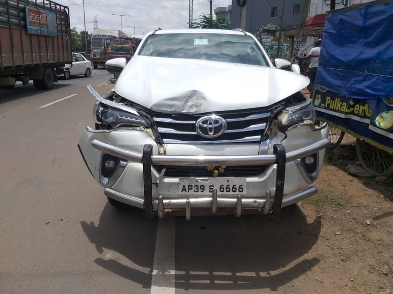 గచ్చిబౌలి నుండి విజయవాడకు వెళ్తున్న సమయంలో ఔటర్ రింగ్ రోడ్డులోని కోహెడ రోడ్డు వద్ద ఈ ప్రమాదం చోటు చేసుకొంది. కాన్వాయ్ లోని ఎస్కార్ట్ వాహనం టైరు పేలిపోవడంతో ఆ వాహనం రెండు పల్టీలు కొట్టి బోల్తా పడింది. దీంతో ఈ వాహనంలో ఉన్న హెడ్ కానిస్టేబుల్ స్పాట్ లోనే మరణించాడు. మరో ముగ్గురు తీవ్రంగా గాయపడ్డారు.