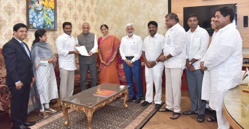 హైదరాబాద్: వైయస్ఆర్ కాంగ్రెస్ పార్టీ అధినేత, ఆంధ్రప్రదేశ్ రాష్ట్రానికి కాబోయే సీఎం వైయస్ జగన్ తెలుగు రాష్ట్రాల గవర్నర్ నరసింహన్ ను కలిశారు. వైయస్ జగన్ తోపాటు ఆయన సతీమణి వైయస్ భారతి, వైసీపీ నేతలు విజయసాయిరెడ్డి, బొత్స సత్యనారాయణ, మిథున్ రెడ్డి, ధర్మాన ప్రసాదరావు, ఆదిమూలపు సురేష్ బుగ్గన రాజేంద్రనాథ్ రెడ్డిలు గవర్నర్ ను కలిశారు.