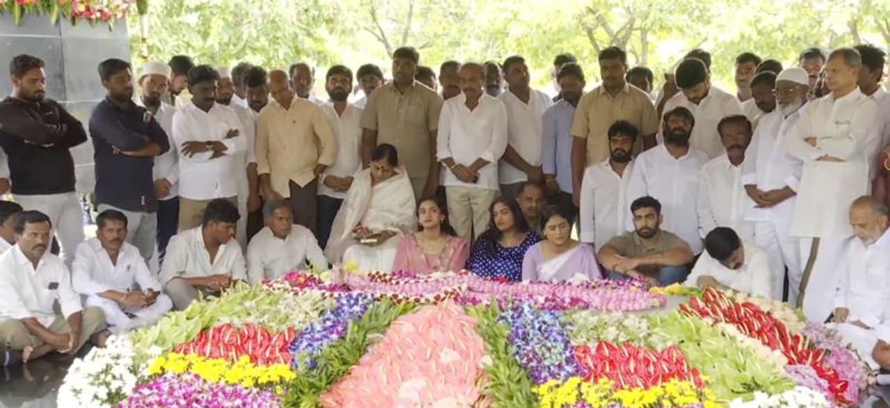 వైఎస్ఆర్ జిల్లా: ఆంధ్రప్రదేశ్ వ్యాప్తంగా దివంగత ముఖ్యమంత్రి డాక్టర్ వైఎస్ రాజశేఖర్ రెడ్డి జయంతి కార్యక్రమాలు నిర్వహిస్తున్నారు. వైఎస్సార్ కాంగ్రెస్ పార్టీ ఆధ్వర్యంలో ఊరూరా వేడుకలు జరుగుతున్నాయి. ఇడుపులపాయలోని వైఎస్ఆర్ ఘాట్ వద్ద రాజశేఖర రెడ్డి 75వ జయంతి వేడుకను ఘనంగా నిర్వహించారు. ఈ సందర్భంగా ఇడుపులపాయలోని వైఎస్ఆర్ ఘాట్ను వైఎస్ఆర్ కాంగ్రెస్ పార్టీ అధ్యక్షులు, మాజీ ముఖ్యమంత్రి వైఎస్ జగన్మోహన్ రెడ్డి సందర్శించారు. వైసీపీ నేతలు, కుటుంబ సభ్యులతో కలిసి తన తండ్రికి ఘన నివాళులర్పించారు. వైఎస్ జగన్ వెంట తల్లి విజయమ్మ, సతీమణి భారతి తదితరులు ఉన్నారు.