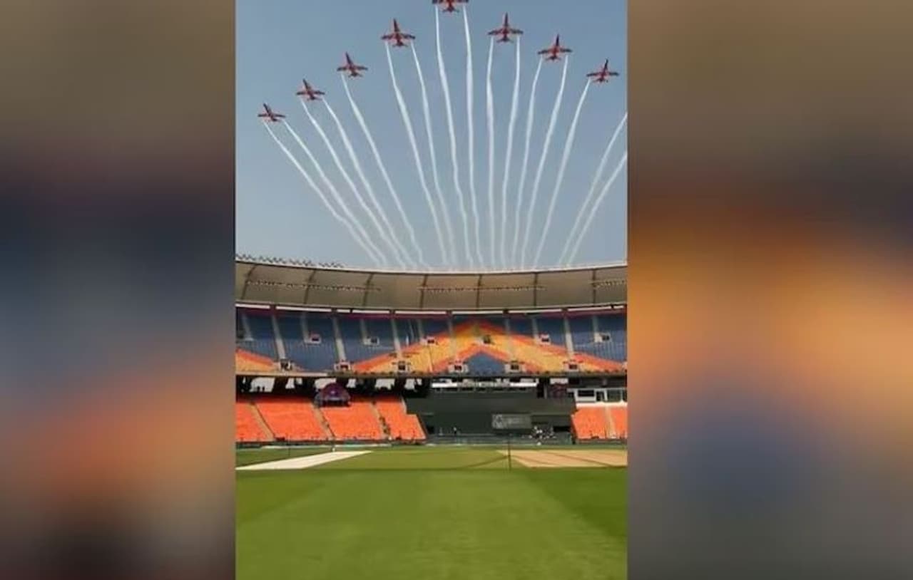 భారత వైమానిక దళానికి చెందిన సూర్యకిరణ్ ఏరోబాటిక్ బృందం విమానాలతో అహ్మదాబాద్లోని నరేంద్ర మోడీ స్టేడియం ఇంజిన్ల మోతతో మోగిపోయింది. అయితే ఏరోబాటిక్ స్క్వాడ్ ఎయిర్ షో కోసం ఈ రిహార్సల్ నిర్వహించింది, నవంబర్ 19న భారతదేశం ఆస్ట్రేలియా మధ్య జరిగే క్రికెట్ ప్రపంచ కప్ ఫైనల్ను ఎలెక్ట్రిఫై చేయడానికి సిద్ధంగా ఉందని ఓ వార్తా సంస్థ నివేదించింది.