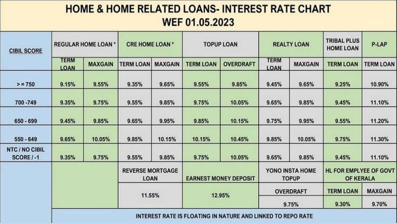CIBIL స్కోర్ 650-699 మధ్య ఉన్న కస్టమర్కు 9.45 శాతం చొప్పున వడ్డీ వసూలుచేయనున్నారు. ఈ రేట్లు మే 1, 2023 నుండి అమలులోకి వచ్చాయి.