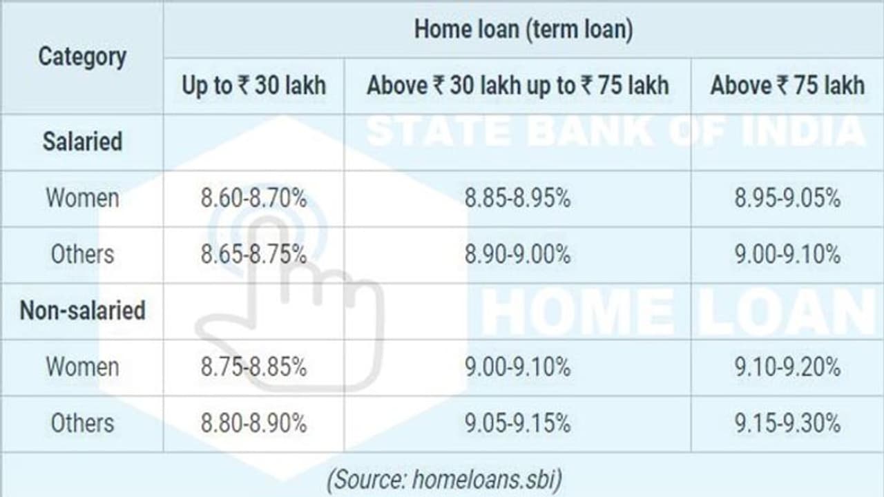 జీతం పొందే మహిళలకు రూ. 30లక్షల వరకు టర్మ్ హోంలోన్స్ 8.6శాతం-8.7శాతం వడ్డీరేటుకే ఎస్బీఐ అందిస్తోంది. ఇతర జీతం పొందే కస్టమర్లకైతే 8.65-8.75శాతం వడ్డీరేటుతో అందిస్తోంది.
