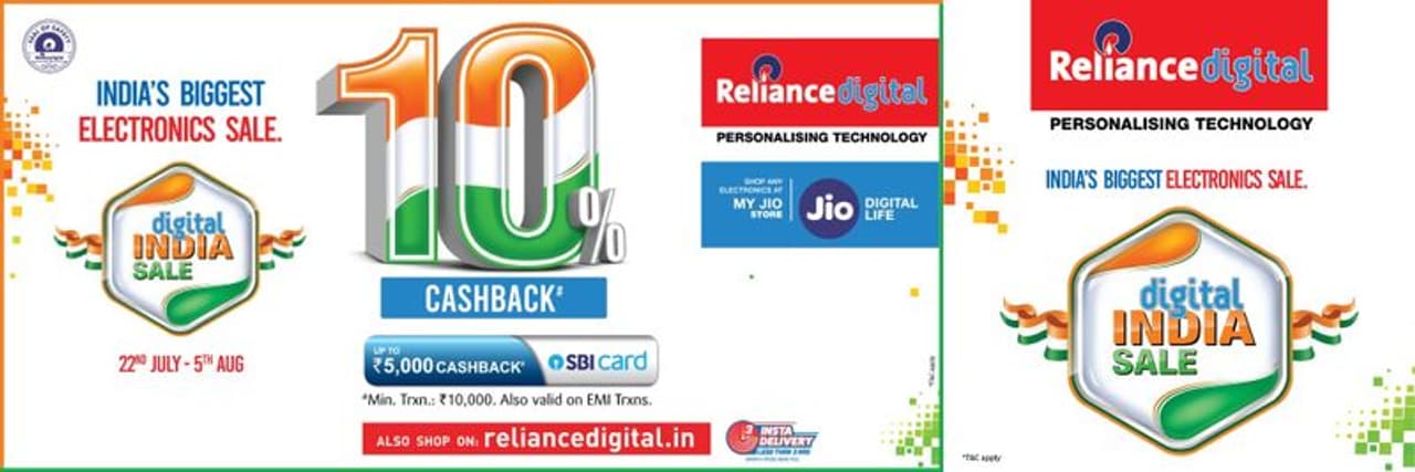రిలయన్స్ ఇండస్ట్రీస్కు చెందిన రిలయన్స్ డిజిటల్ కొనుగోలుదారులకు ‘ ఇండియా బిగ్గెస్ట్ ఎలక్ట్రానిక్స్ సేల్-డిజిటల్ ఇండియా సేల్’ పేరిట సేల్ను ప్రకటించింది. ఈ సేల్లో భాగంగా ఎలక్ట్రానిక్ ఉత్పత్తులపై ఆకర్షణీయమైన ఆఫర్లు, బిగ్ డిస్కౌంట్లను రిలయన్స్ డిజటల్ అందిస్తోంది.
