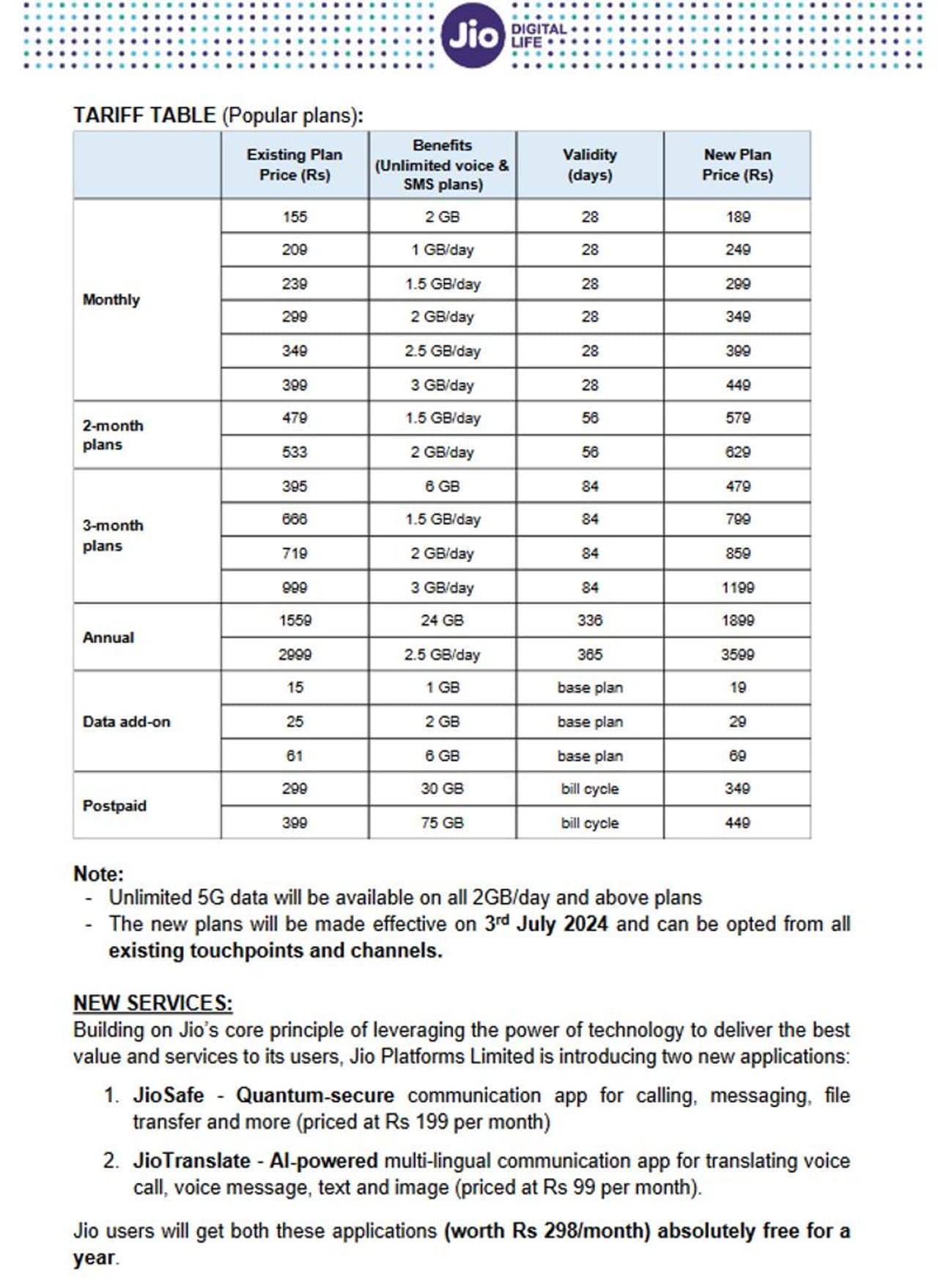 పెరిగిన టారీఫ్స్ ప్రకారం జియో రీచార్జ్ ప్లాన్స్ వివరాలివే..: