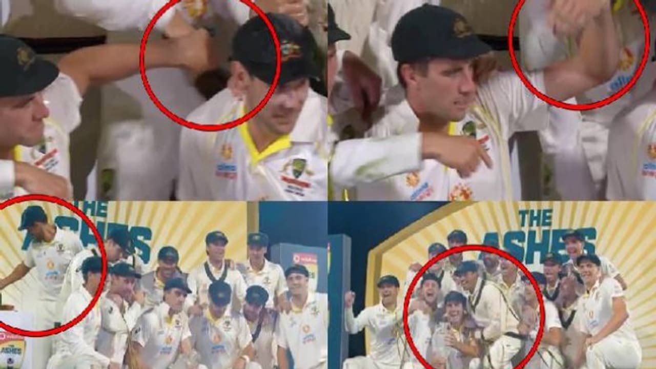 ఇంతకీ కమిన్స్ ఏం చేశాడంటే.. యాషెస్ గెలిచిన తర్వాత విజేతకు కప్ అందించే కార్యక్రమం ముగిసింది. యాషెస్ గెలిచిన ఆనందంలో కంగారూ జట్టు ఆటగాళ్ల ఆనందానికి అవధుల్లేవు. షాంపైన్ లతో వేదికనంతా నింపేశారు. ఒకరిమీద ఒకరు షాంపైన్ చల్లుకున్నారు. ఇక కప్ తో ఫోటోలకు ఫోజులిచ్చే క్రమంలో కూడా ఒకరి మీద ఒకరు షాంపైన్ పోసుకున్నారు. దీంతో ఆ జట్టు ఆటగాడు ఉస్మాన్ ఖవాజా.. వారి నుంచి దూరంగా వెళ్లి నిల్చున్నాడు.