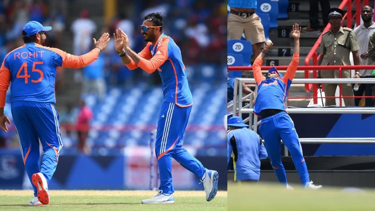 IND vs AUS - Axar Patel superb catch : టీ20 ప్రపంచ కప్ 2024 సూపర్-8 మ్యాచ్ లో భారత జట్టు 24 పరుగుల తేడాతో ఆస్ట్రేలియాను ఓడించి సెమీ ఫైనల్ కు చేరుకుంది. బ్యాటింగ్, బౌలింగ్, ఫీల్డింగ్ లో అదరగొట్టి కంగారు జట్టుకు బిగ్ షాకిచ్చింది. బ్యాటింగ్ లో రోహిత్ శర్మ సిక్సర్లతో పరుగుల సునామీ సృష్టించాడు. బౌలింగ్ లో అర్ష్దీప్ సింగ్-కుల్దీప్ యాదవ్ అదరగొట్టారు. వీరికి తోడుగా అక్షర్ పటేట్ బంతితో తో పాటు ఫీల్డింగ్ లో అదరగొట్టాడు. దీంతో భారత జట్టు అద్భుత విజయంతో టీ20 ప్రపంచ కప్ 2024 లో సెమీ ఫైనల్ లో అడుగుపెట్టింది.