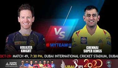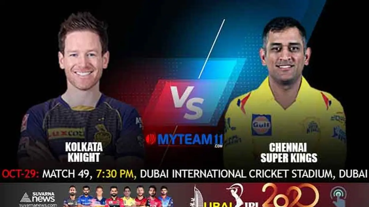 IPL 2020 సీజన్లో భాగంగా నేడు చెన్నై సూపర్ కింగ్స్, కోల్కత్తా నైట్రైడర్స్ మధ్య మ్యాచ్ జరగనుంది. ఇప్పటికే చెన్నై సూపర్ కింగ్స్ ప్లేఆఫ్ రేసు నుంచి తప్పుకోగా, పాయింట్ల పట్టికలో ఐదో స్థానంలో ఉన్న కోల్కత్తా నైట్రైడర్స్ ప్లేఆఫ్ రేసులో ఉండాలంటే నేటి మ్యాచ్లో తప్పక గెలవాల్సిందే. ఈ మ్యాచ్లో కేకేఆర్ ఓడితే పంజాబ్ అవకాశాలు మెరుగవుతాయి.