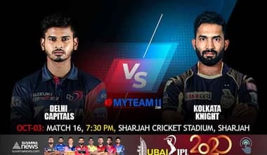 IPL 2020 సీజన్ 13లో భాగంగా నేడు ఢిల్లీ క్యాపిటల్స్తో కోల్కత్తా నైట్రైడర్స్ తలబడుతోంది. ఢిల్లీ రెండు వరుస విజయాల తర్వాత గత మ్యాచ్ ఓడగా... కోల్కత్తా మొదటి మ్యాచ్ ఓడి తర్వాత రెండు మ్యాచుల్లో విజయం సాధించారు. షార్జాలో జరుగుతున్న ఈ మ్యాచ్లో భారీ స్కోరు వచ్చే అవకాశం పుష్కలంగా ఉంది.