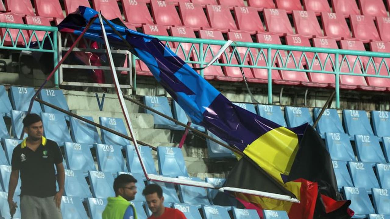 లక్నోలో ఆస్ట్రేలియా- శ్రీలంక మ్యాచ్కి వర్షం కారణంగా కాసేపు అంతరాయం... గాలిదుమారానికి కూలిన వరల్డ్ కప్ హోర్డింగ్, తప్పిన ప్రమాదం..