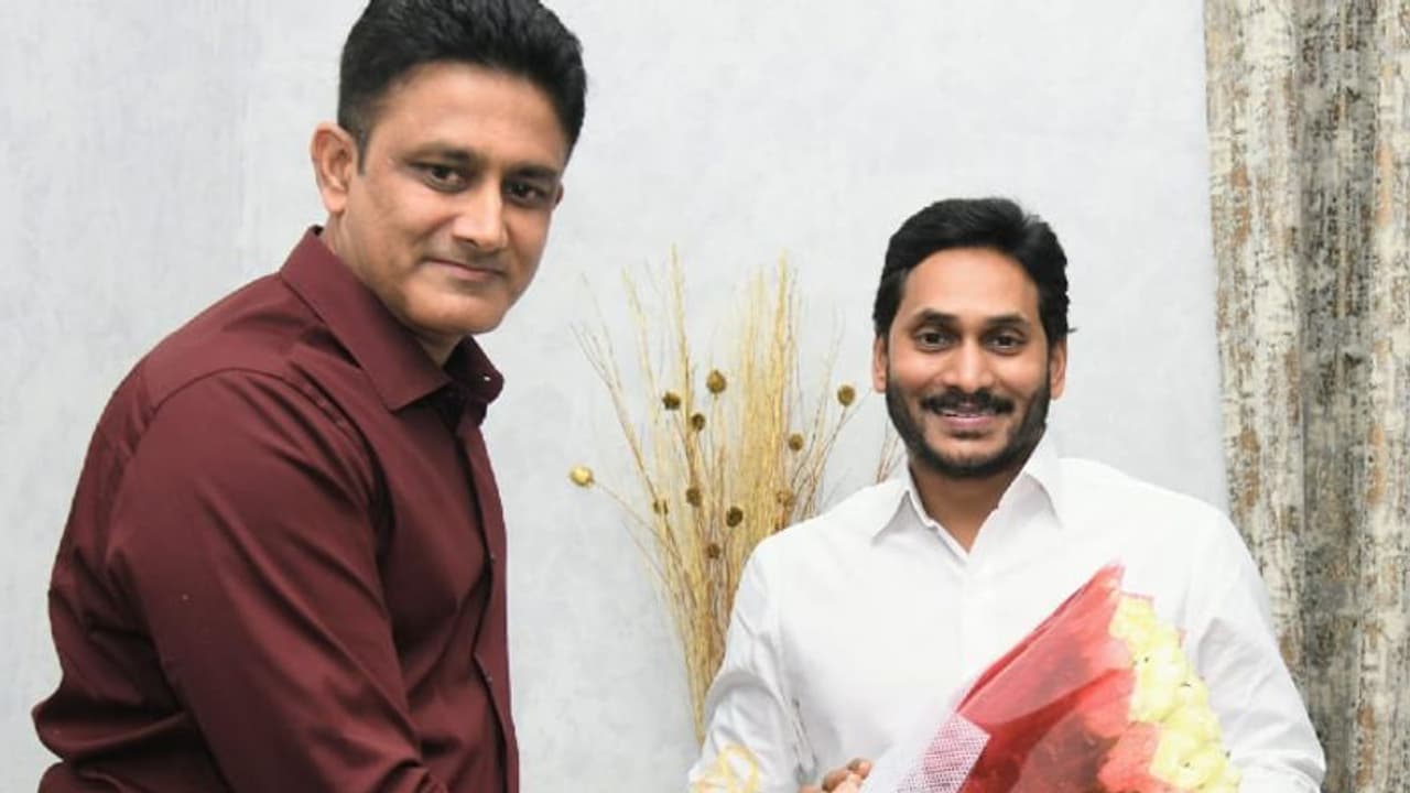 భారత మాజీ క్రికెటర్, మాజీ కోచ్ అనిల్ కుంబ్లే, ఆంధ్రప్రదేశ్ ముఖ్యమంత్రి క్యాంప్ కార్యాలయంలో సీఎం వైఎస్ జగన్ను మర్యాదపూర్వకంగా కలిశాడు. టెస్టుల్లో ఒకే ఇన్నింగ్స్లో పదికి పది వికెట్లు తీసిన ఇద్దరు బౌలర్లలో ఒక్కడైన అనిల్ కుంబ్లే, జగన్కి జ్ఞాపిక, తన క్రికెట్ ఇన్నింగ్స్కి సంబంధిన ఫ్రేమ్ను అందచేశారు.