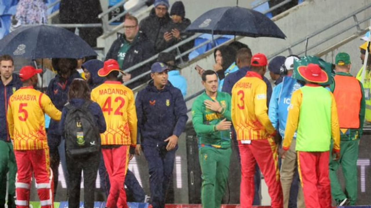 T20 World Cup 2022: టీ20 ప్రపంచకప్ లో సౌతాఫ్రికా-జింబాబ్వే మ్యాచ్ లో ఫలితం తేలలేదు. వర్షం వల్ల 9 ఓవర్లకు కుదించిన మ్యాచ్ లో దక్షిణాఫ్రికా బ్యాటింగ్ చేసేప్పుడు మళ్లీ వాన అంతరాయం కలిగించింది.