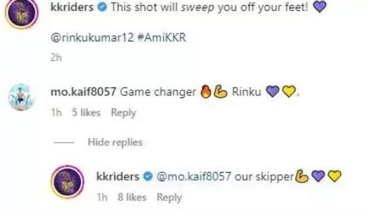 దీంతో కేకేఆర్ అభిమానులు షాక్ కు గురవుతున్నారు. ‘నిజమా.. రింకూకు కెప్టెన్సీ ఇచ్చారా..?’, ‘ఇది నిజంగా షాకింగ్ గా ఉంది..’, ‘రింకూకు కెప్టెన్సీ ఇచ్చారా..? మరి రాణా, సౌథీ, నరైన్ ల సంగతి ..’, ‘ఇది సాహసోపేత నిర్ణయం..’అని కామెంట్స్ చేశారు. ఈ కామెంట్స్ తర్వాత కేకేఆర్ ఈ పోస్టును డిలీట్ చేసింది.