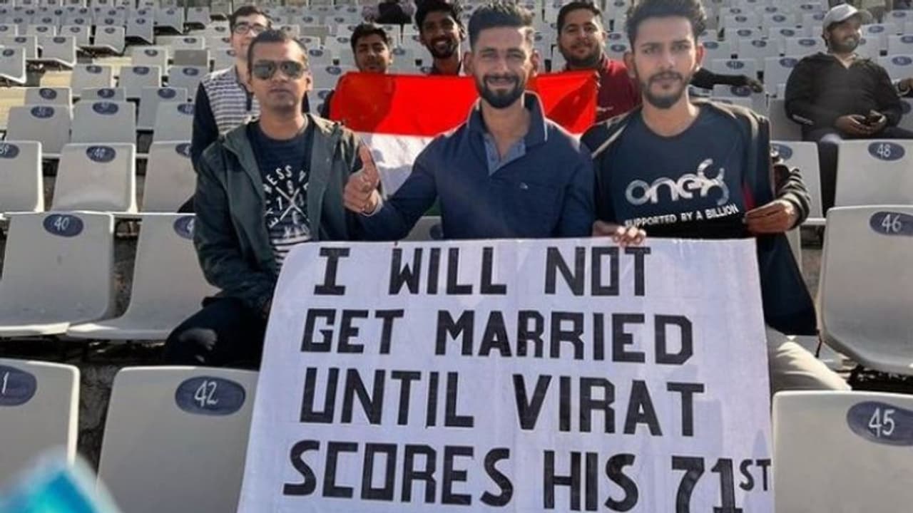 ఇక ఒకప్పుడు సెంచరీల మీద సెంచరీలు చేసిన కోహ్లి.. రెండున్నరేండ్లుగా అదేదో తనకు సంబంధం లేని వ్యవహారంగా మారిపోయాడు. ఈ టెస్టు సందర్భంగా మొహాలీకి వచ్చిన కోహ్లి అభిమానులు కొంతమంది.. ‘విరాట్ కోహ్లి 71వ సెంచరీ చేసేదాక నేను పెళ్లి చేసుకోబోను..’ అని ప్లకార్డు పట్టుకున్నాడు. ఇందుకు సంబంధించిన ఫోటోలు ఇప్పుడు సోషల్ మీడియాలో వైరల్ గా మారాయి.