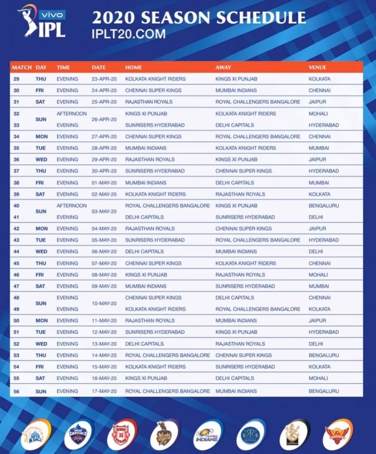 ఐపీఎల్ పూర్తి షెడ్యూల్:
