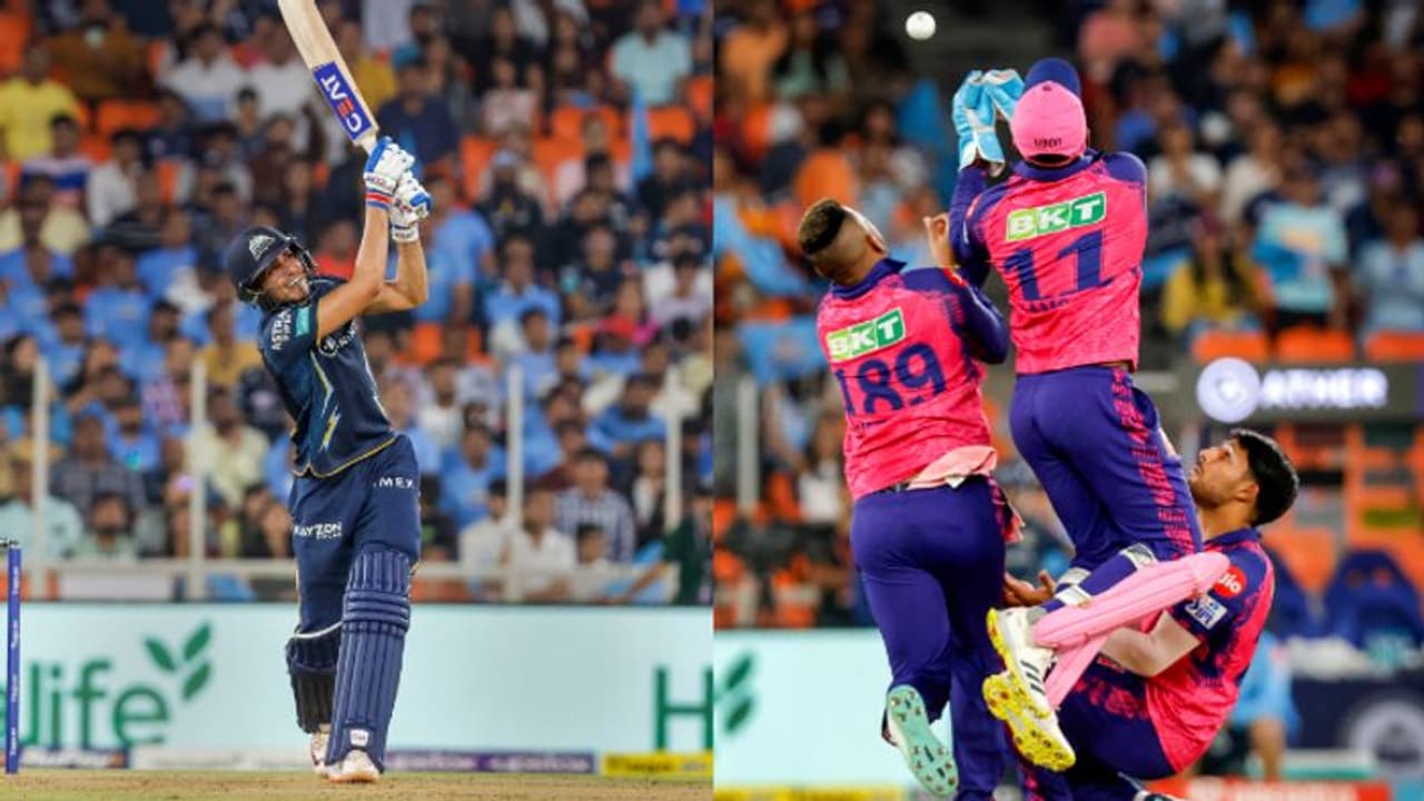 గతేడాది ఐపీఎల్ ఫైనల్ ప్రత్యర్థుల మధ్య అహ్మదాబాద్ వేదికగా రాజస్తాన్ రాయల్స్తో జరుగుతున్న మ్యాచ్ లో డిఫెండింగ్ ఛాంపియన్ గుజరాత్ టైటాన్స్.. స్థాయికి తగ్గ ప్రదర్శన చేయలేదు. డెత్ ఓవర్లలో మెరుపులతో ఆ జట్టు పోరాడే టార్గెట్ ను రాజస్తాన్ ఎదుట నిలిపింది. గుజరాత్ బ్యాటర్లు ఆరంభంలో శుభ్మన్ గిల్ (34 బంతుల్లో 45, 4 ఫోర్లు, 1 సిక్సర్) మరో కీలక ఇన్నింగ్స్ ఆడగా చివర్లో డేవిడ్ మిల్లర్ (30 బంతుల్లో46, 3 ఫోర్లు, 2 సిక్సర్లు) తో పాటు అభినవ్ మనోహర్ (13 బంతుల్లో 27, 3 సిక్సర్లు) రాణించడంతో నిర్ణీత 20 ఓవర్లలో గుజరాత్ టైటాన్స్.. 7 వికెట్ల నష్టానికి 177 పరుగులు చేసింది. రాజస్తాన్ బౌలర్లు డెత్ ఓవర్లలో భారీగా పరుగులిచ్చుకోకుంటే గుజరాత్ ఇంకా తక్కువ స్కోరుకే పరిమితమయ్యేది.