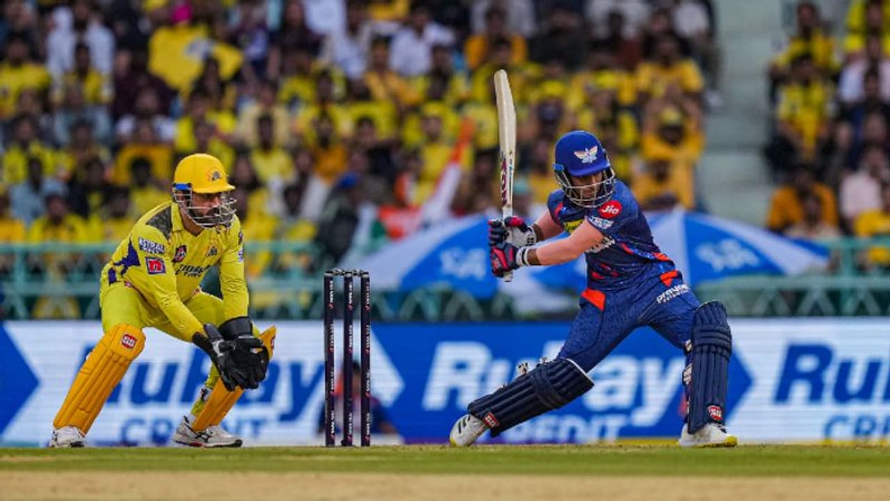 10 ఓవర్లలో 44 పరుగులకే ఐదు వికెట్లు కోల్పోయిన లక్నో.. ఇన్నింగ్స్ ఆ తర్వాత మరింత దారుణంగా సాగింది. అయూష్ బదోని, నికోలస్ పూరన్ లు ఆరో వికెట్ కు 59 పరుగులు జోడించారు. 31 బంతుల్లో 20 పరుగులే చేసిన పూరన్.. మతీశ పతిరాన వేసిన 18వ ఓవర్లో నాలుగో బంతికి మోయిన్ అలీకి క్యాచ్ ఇచ్చాడు. ఆ ఓవర్లోనే లక్నో స్కోరు వంద దాటింది. చివర్లో బదోని చాహర్ వేసిన 19వ ఓవర్లో 4,6,6తో లక్నో స్కోరును 120 దాటించాడు. వర్షం వల్ల మ్యాచ్ ఆగిపోయే సమయానికి లక్నో 19.2 ఓవర్లలో 7 వికెట్లు కోల్పోయి 125 పరుగులు చేసింది. అయూష్ బదోని (33 బంతుల్లో 59 నాటౌట్, 2 ఫోర్లు, 4 సిక్సర్లు) ఒక్కడే రాణించాడు.