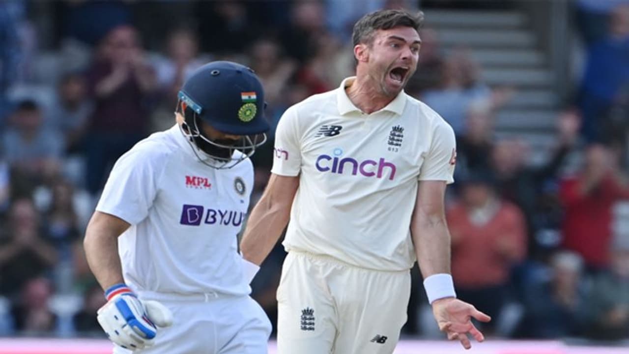 లార్డ్స్ లో అసాధారణ విజయం సాధించిన టీమిండియా.. మూడో టెస్టులో డీలా పడిపోయింది. గత మ్యాచ్ లో అద్భుత పోరాటంతో గెలిచిన జట్టు ఇదేనా అనే అనుమానం కలిగేలా.. బ్యాట్స్ మెన్లు దారుణంగా విఫలమయ్యారు. టాప్ ఆర్డర్ , మిడిల్ ఆడర్డర్, లోయర్ ఆర్డర్.. ఏదీ నిలవలేకపోయింది. ఇంగ్లాండ్ మాయాజలం ముందు.. టీమిండియా కుప్పకూలిపోయింది. మూడో టెస్టు తొలి ఇన్నింగ్స్ లో కేవలం 78 పరుగులకే కుప్పకూలడం గమనార్హం. కాగా.. ఈ టెస్టు ఇన్నింగ్స్ లో టీమిండియా వైఫల్యాన్ని.. ఇంగ్లాండ్ క్రికెటర్ జేమ్స్ అండర్సన్ ఎక్కువగా ఆస్వాదించాడు కోహ్లీ ఓటమిని.. అతను సెలబ్రేట్ చేసుకున్నాడు.