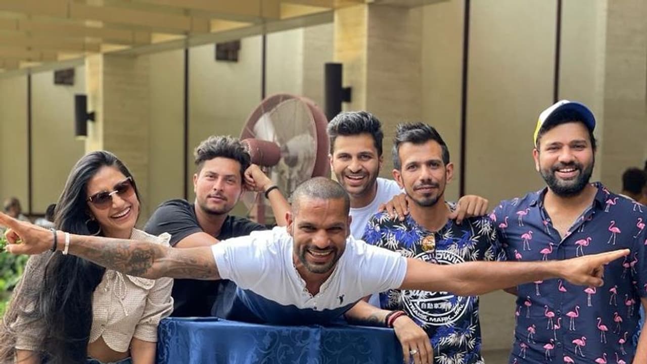 శిఖర్ ధావన్తో కలిసి బాంగ్రా స్టెప్పులేసిన ధనశ్రీ వర్మ...భారత క్రికెటర్లతో కలిసి స్టెప్పులేస్తూ క్రేజ్ పెంచుకుంటున్న యూట్యూబర్ ధనశ్రీ వర్మ... చాహాల్ సతీమణికి మంచి ఫాలోయింగ్...