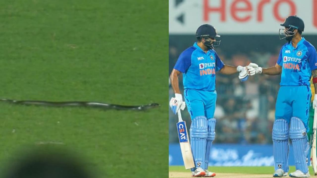 మ్యాచ్ మధ్యలో.. పాము గ్రౌండ్ లోకి పాక్కుంటూ రావడం గమనార్హం. ఈ పాము నుంచి గ్రౌండ్ లో ఫీల్డింగ్ చేస్తున్న ఆటగాళ్లు ఒక్కసారిగా భయపడిపోయారు. దీంతో.. కాసేపు మ్యాచ్ ని ఆపేయాల్సి వచ్చింది.