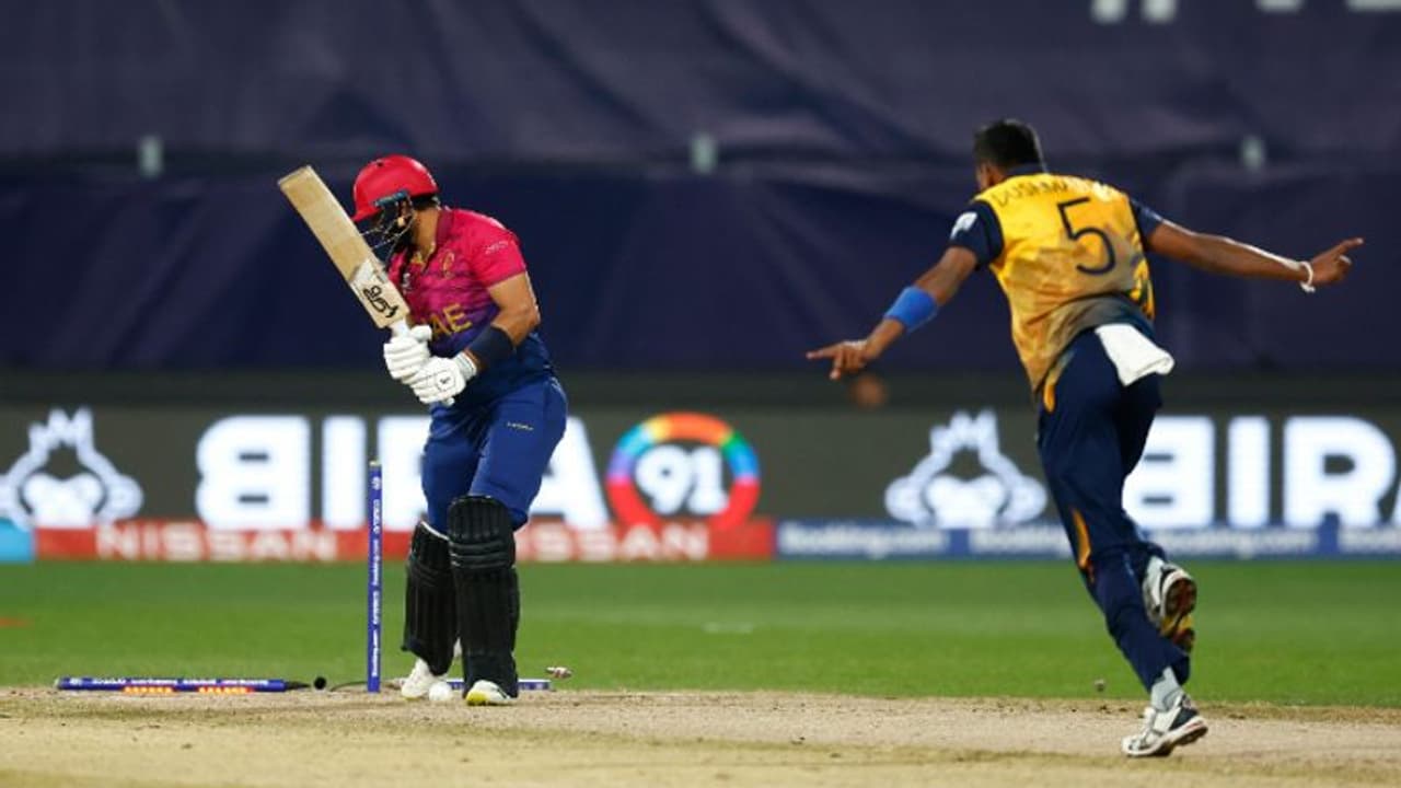 వీళ్లిద్దరూ మినహా లంక బ్యాటర్లు దారుణంగా విఫలమయ్యారు. భానుక రాజపక్స (5), అసలంక (0), దసున్ శనక (0), వనిందు హసరంగ (2) లు సింగిల్ డిజిట్ స్కోరుకే పరిమితమయ్యారు. యూఏఈ బౌలర్లలో కార్తీక్ మెయ్యప్పన్ హ్యాట్రిక్ తో మెరవగా జహూర్ ఖాన్ రెండు వికెట్లు తీశాడు. అర్యన్ లక్ర, అఫ్జల్ ఖాన్ లు తలో వికెట్ తీశారు.