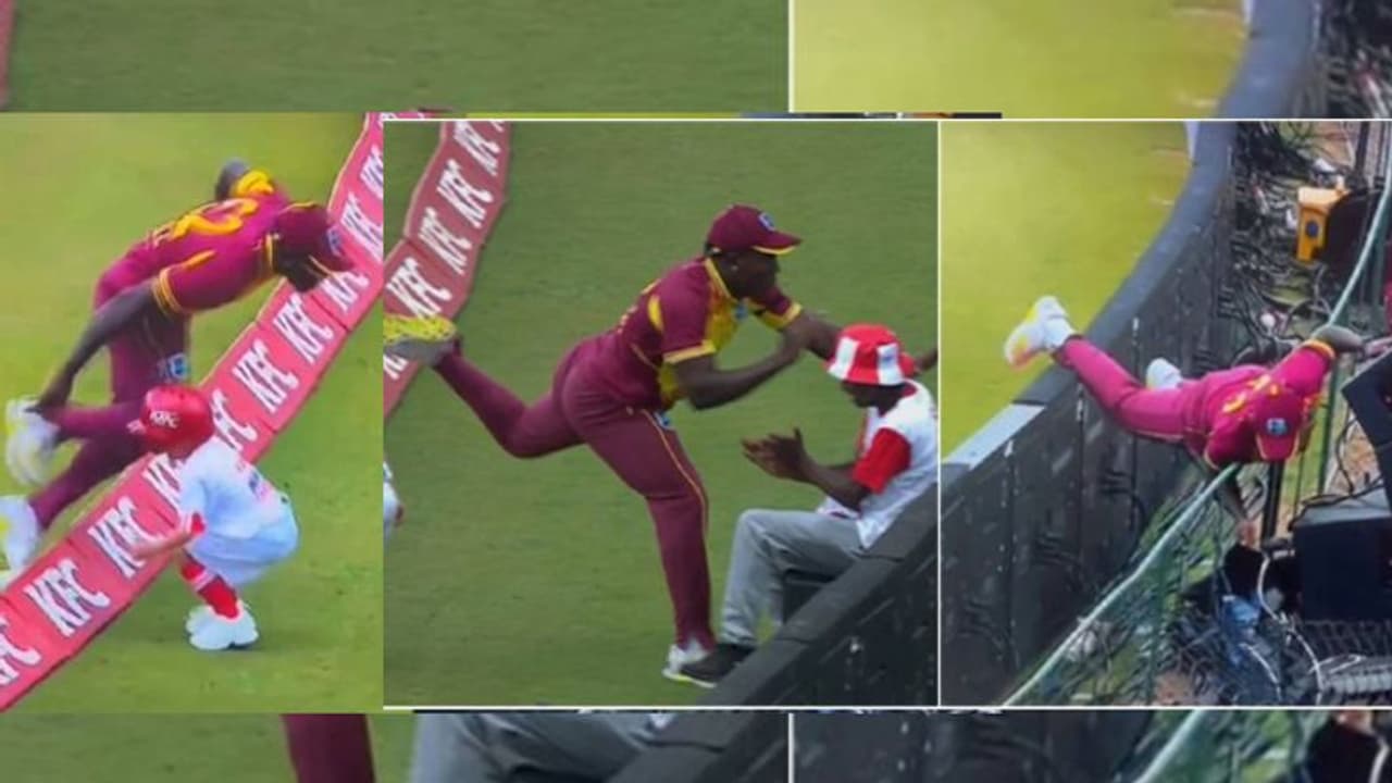 ఆ పిల్లాడికి తగలకూడదనే ఉద్దేశంతో బంతిని వదిలేసిన రోవ్మన్ పావెల్, బౌండరీ లైన్ లోపల కూర్చొన్న మరో బాల్ బాయ్ని కూడా తప్పించుకుని ఎల్ఈడీ బోర్డుల పైన పడ్డాడు. రోవ్మన్ పావెల్ వచ్చిన స్పీడ్కి అదుపుతప్పి ఆ ఎల్ఈడీ బోర్డుల పైనుంచి కూడా పల్టీ కొట్టి, ప్రేక్షకులు లోపలికి రాకుండా వేసిన కంచెకు బలంగా తగలబోయాడు. అయితే అక్కడ ఏర్పాటు చేసిన ఓ సౌండ్ బాక్స్ అతనికి ఆసరాగా దొరకడంతో పెను ప్రమాదం నుంచి తప్పించుకున్నాడు...
