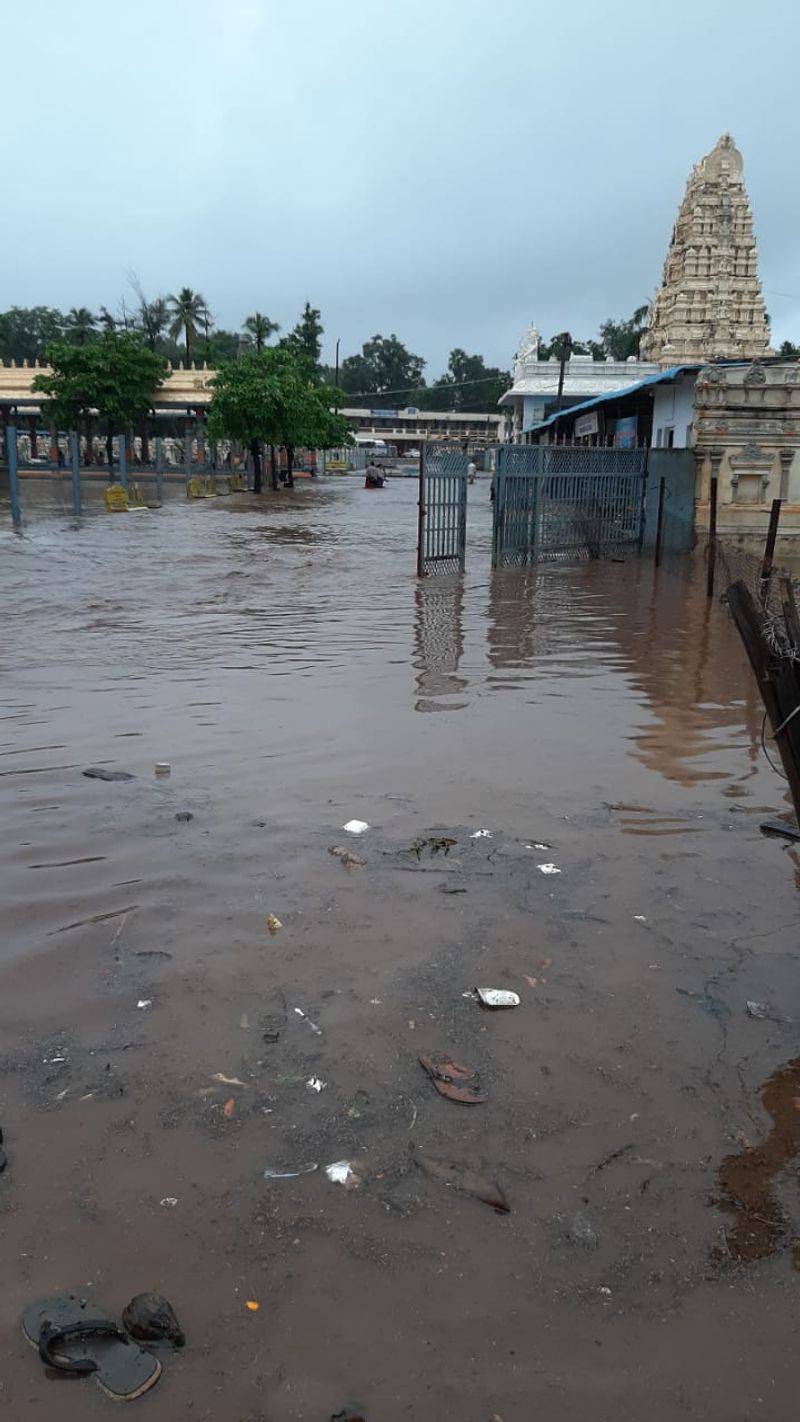 పంచలింగాల మంటపం, కోనేర్లు కూడా పూర్తిగా నీట మునిగిపోయాయి. కర్నూలు జిల్లాలో గత కొద్దిరోజులుగా భారీ వర్షాలు కురుస్తున్న సంగతి తెలిసిందే. కాగా... ఈ భారీ వర్షాలకు వరదలు పొంగిపొర్లాయి. ఈ క్రమంలోనే ఆలయం నీట మునిగే పరిస్థితి ఏర్పడింది.
