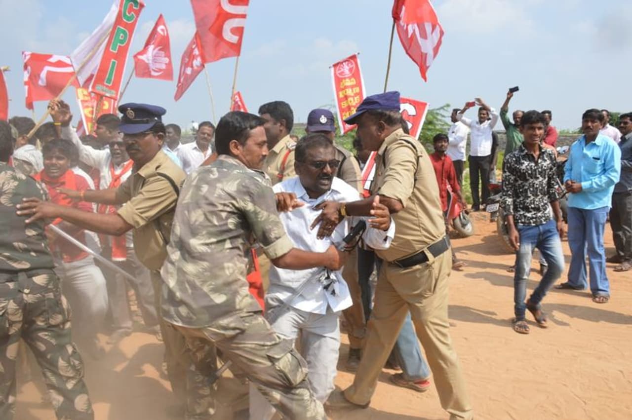 ఇసుక సత్యాగ్రహం ర్యాలీ డంప్ యార్డ్ లోకి వెళ్లకుండా పోలీసులు అడ్డగించి నిరసనకారులను అరెస్టు చేయడం జరిగింది. వారందరిని స్థానికి పోలీస్ స్టేషన్ కు తరలించి కాస్సేపటి తర్వాత సొంత పూచీకత్తుపై విడుదల చేశారు.