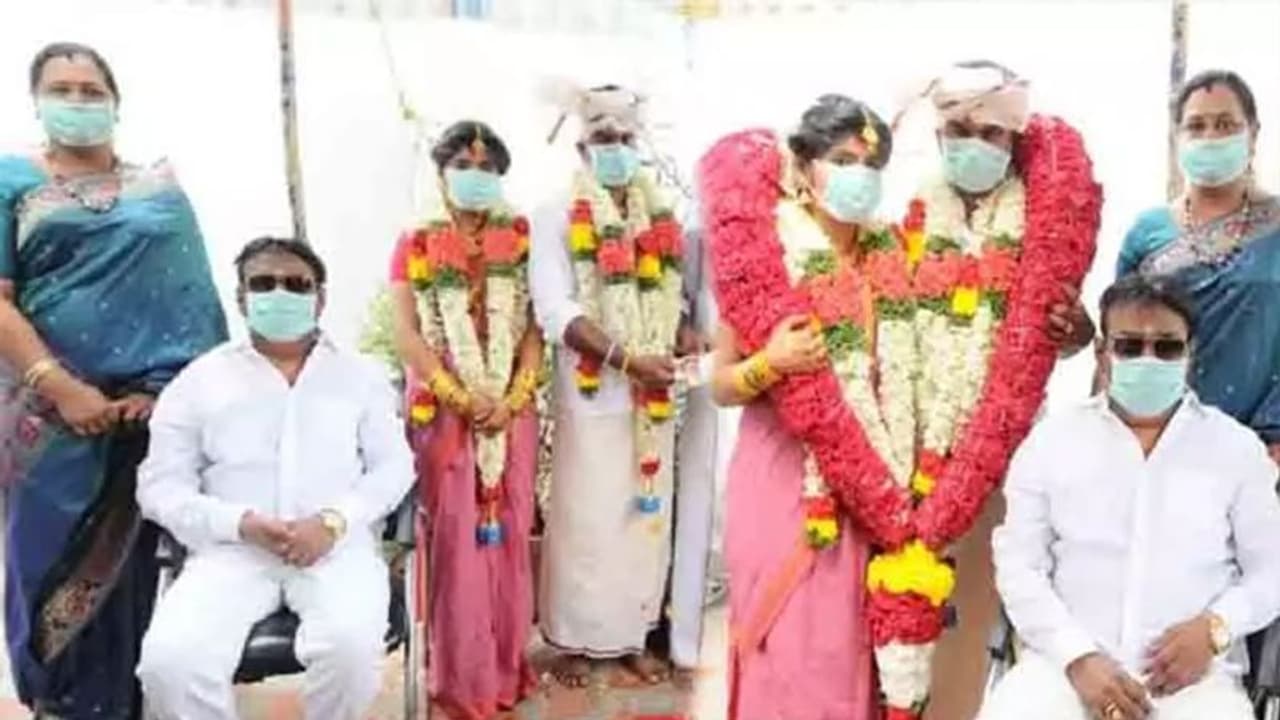 దీనితో విజయ్ కాంత్ వధువు, వరుడు లని తన ఇంటికే పిలిపించుకుని వివాహం జరిపించారు. అది కూడా ప్రతి ఒక్కరూ మాస్క్ లు ధరించుకుని.. ఈ వేడుకలో కేవలం 10 మంది మాత్రమే పాల్గొన్నారు. ఈ ఫోటో ప్రస్తుతం సామజిక మాధ్యమాల్లో వైరల్ అవుతోంది.