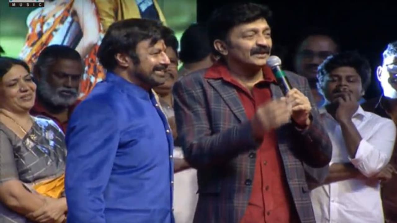 ప్రీ రిలీజ్ వేడుకకు జీవిత, రాజశేఖర్ దంపతులు అతిథులుగా హాజరు కావడం విశేషం. ప్రీరిలీజ్ వేడుకలో రాజశేఖర్ మాట్లాడుతూ.. ఇండస్ట్రీకి వచ్చిన కొత్తల్లో తనని ఆదరించిన ఏకైక హీరో బాలకృష్ణ. తాను, జీవిత బాలకృష్ణ కోసమే ఈ వేడుకకు వచ్చాం అని రాజశేఖర్ తెలిపారు.