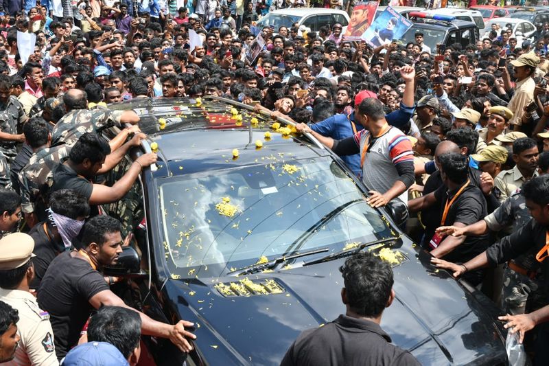 ఓ ప్రముఖ జ్యువెలరీ సంస్థ షోరూం ప్రారంభోత్సవానికి మహేష్ హాజరయ్యాడు. దీనితో మహేష్ ని చూసేందుకు అభిమానులు పెద్దఎత్తున ఎగబడ్డారు. మహేష్ బాబు వస్తుండడంతో పోలీసులు కూడా చేరుకొని భద్రత కల్పించారు.