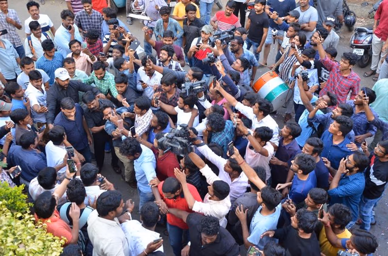 ఫస్ట్ లుక్ రిలీజ్ సందర్భంగా దిల్ రాజు ఆఫీస్ ఎదుట హంగామా చేశారు. ఫస్ట్ లుక్ విడుదల కాగానే దిల్ రాజుని ఫ్యాన్స్ చుట్టుముట్టారు. కేక్ కట్ చేయించి తమ సంతోషాన్ని తెలిసీజేశారు. ప్రస్తుతం ఆ ఫొటోస్ వీడియోస్ సోషల్ మీడియాలో వైరల్ అవుతున్నాయి. వకీల్ సాబ్ ఫస్ట్ లుక్ పై వరుణ్ తేజ్, సాయి ధరమ్ తేజ్, నిఖిల్, అనిల్ రావిపూడి, హరీష్ శంకర్ లాంటి సెలెబ్రిటీలంతా సోషల్ మీడియాలో స్పందించారు.