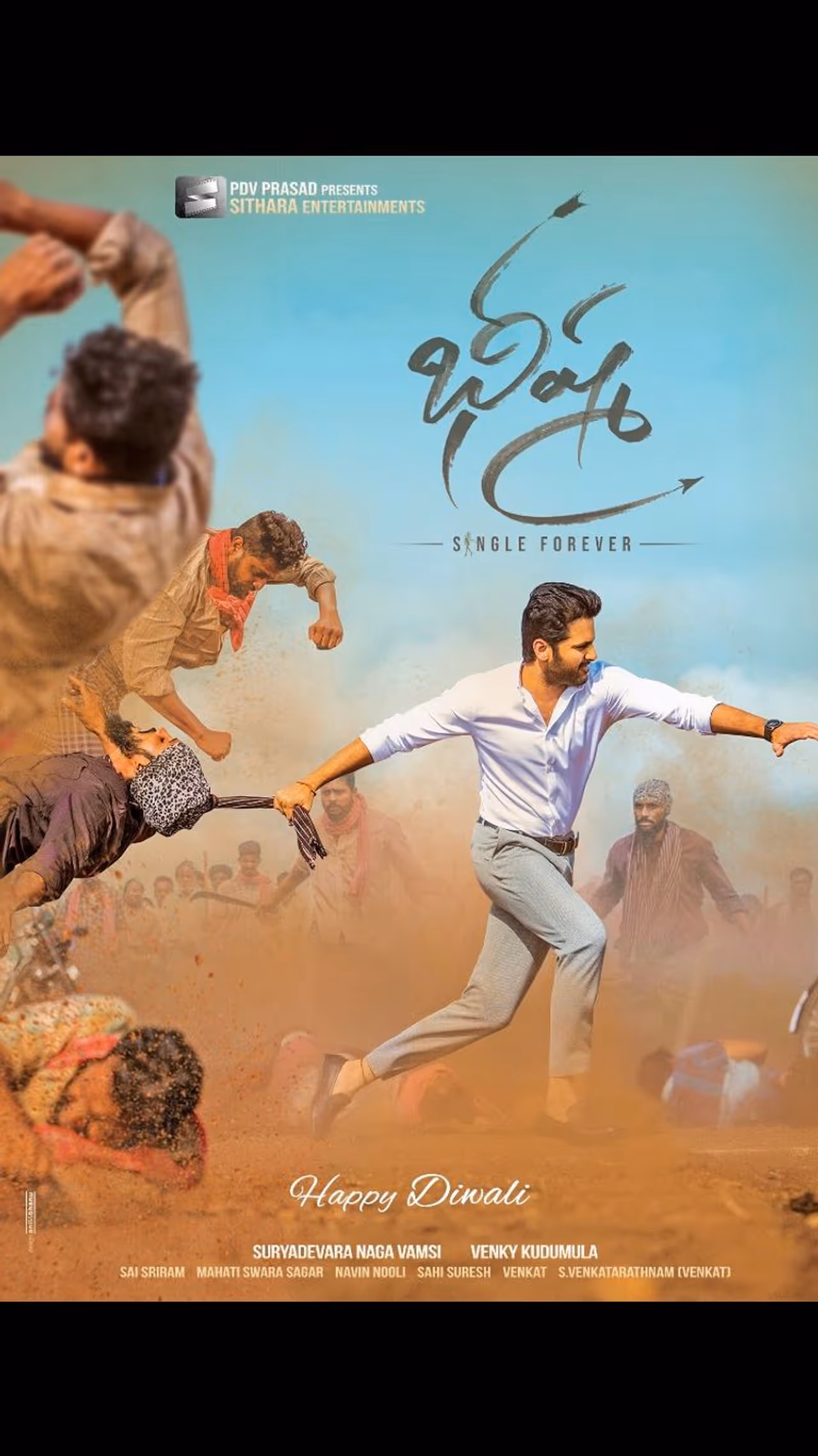 తాజాగా భీష్మ చిత్ర యూనిట్ దీపావళి కానుకగా ఫస్ట్ లుక్ పోస్టర్స్ విడుదల చేసింది. రొమాంటిక్ గా ఉండే ఓ పోస్టర్, నితిన్ యాక్షన్ సన్నివేశాల్లో పెర్ఫామ్ చేస్తున్న మరో పోస్టర్ ని చిత్ర యూనిట్ విడుదల చేసింది. ఈ రెండు పోస్టర్స్ లో నితిన్ లుక్ ఆకట్టుకుంటోంది.