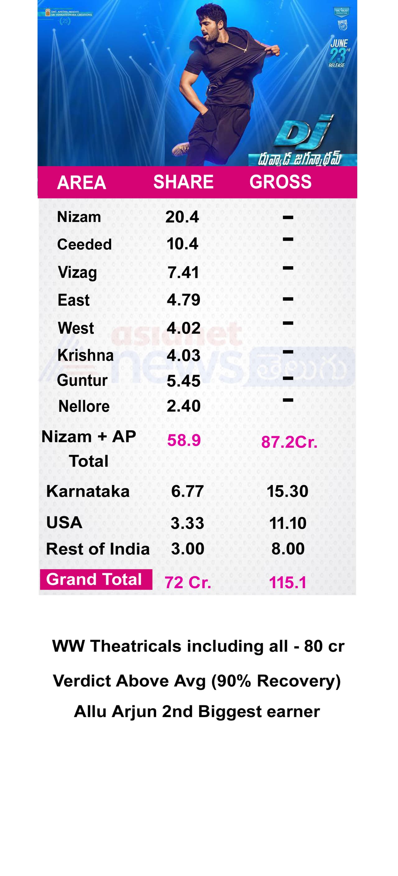 డిజే మూవీ వరల్డ్ వైడ్ కలెక్షన్స్