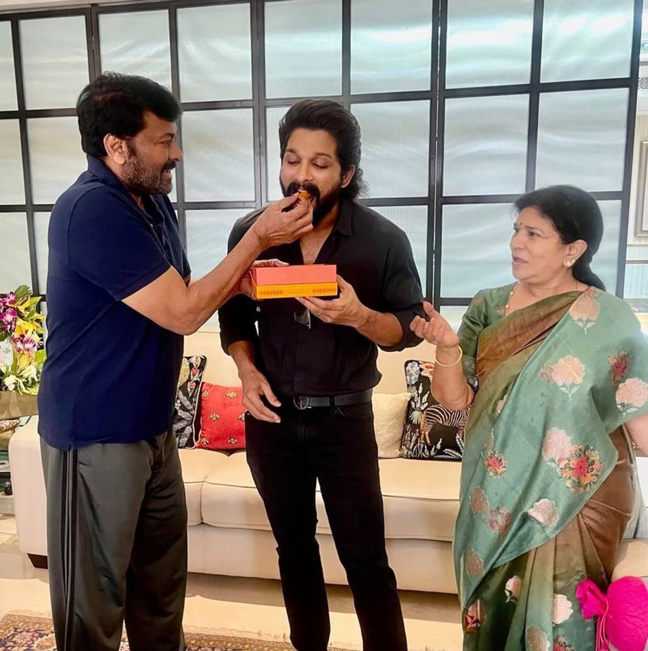 అల్లు అర్జున్ చిరంజీవి, సురేఖ దంపతులతో ఉన్న ఫోటోస్ ప్రస్తుతం మెగా అభిమానులని విశేషంగా ఆకట్టుకుంటున్నాయి. చిరంజీవి అల్లు అర్జున్ కి శుభాకాంక్షలు తెలిపి ప్రేమగా స్వీట్ తినిస్తున్నారు. పక్కనే సురేఖ కూడా ఉన్నారు. అల్లు అర్జున్ నేషనల్ అవార్డు సాధించడం పట్ల సురేఖ సంతోషం వ్యక్తం చేస్తూ బన్నీని ఆప్యాయంగా హత్తుకున్న వీడియో కూడా సోషల్ మీడియాలో వైరల్ గా మారింది.